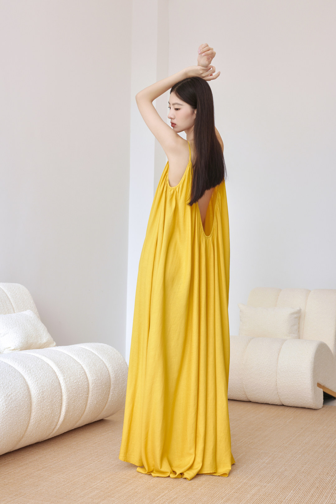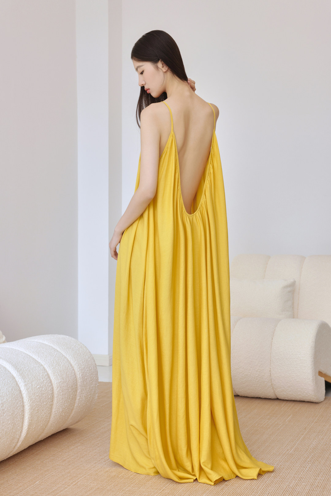 ASAYA6337 – Golden Breeze Backless Maxi Dress 🌼✨