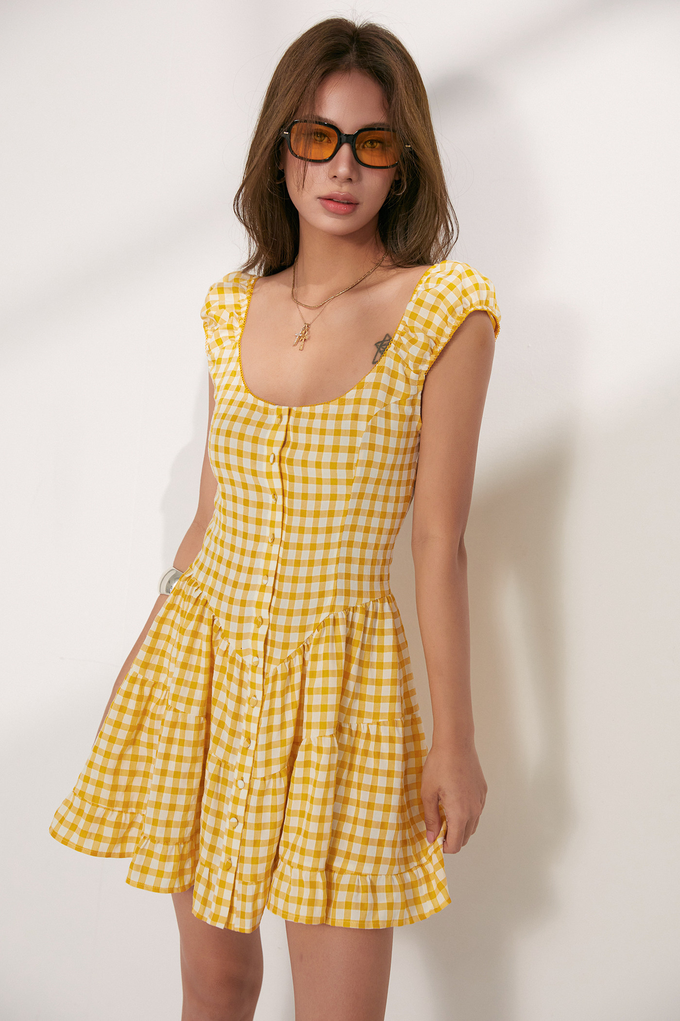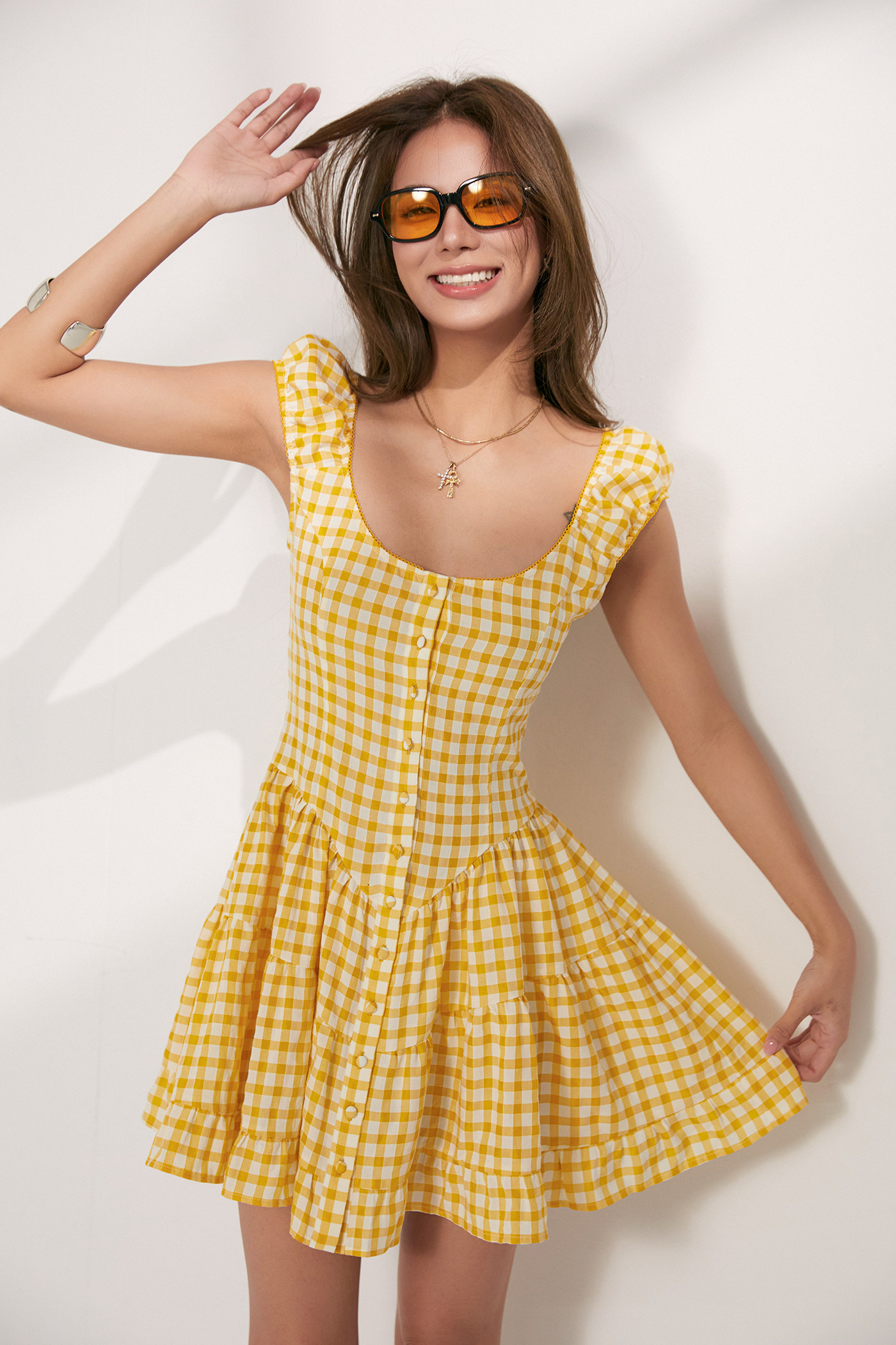 ASAYA6392 – Sunny Gingham Babydoll Dress ☀️💛