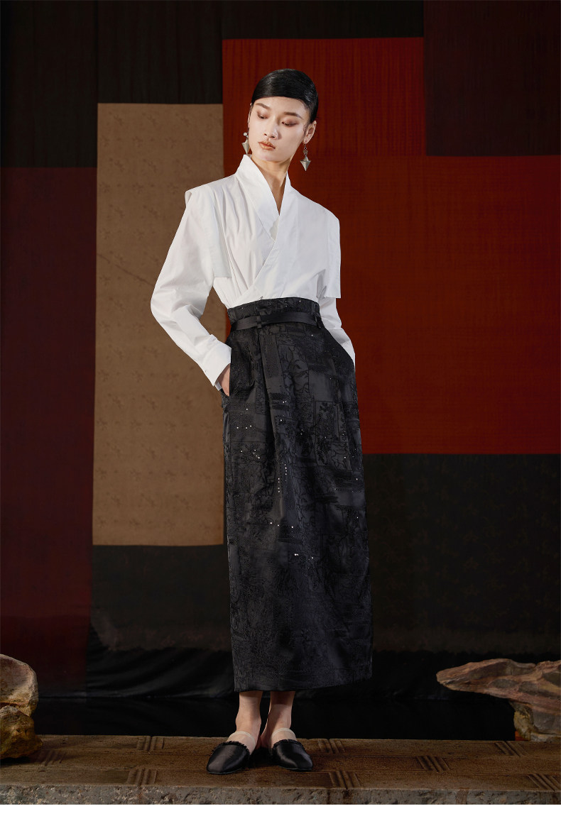 ASAYA5955 – Timeless Brocade Wrap Skirt 🤍🖤