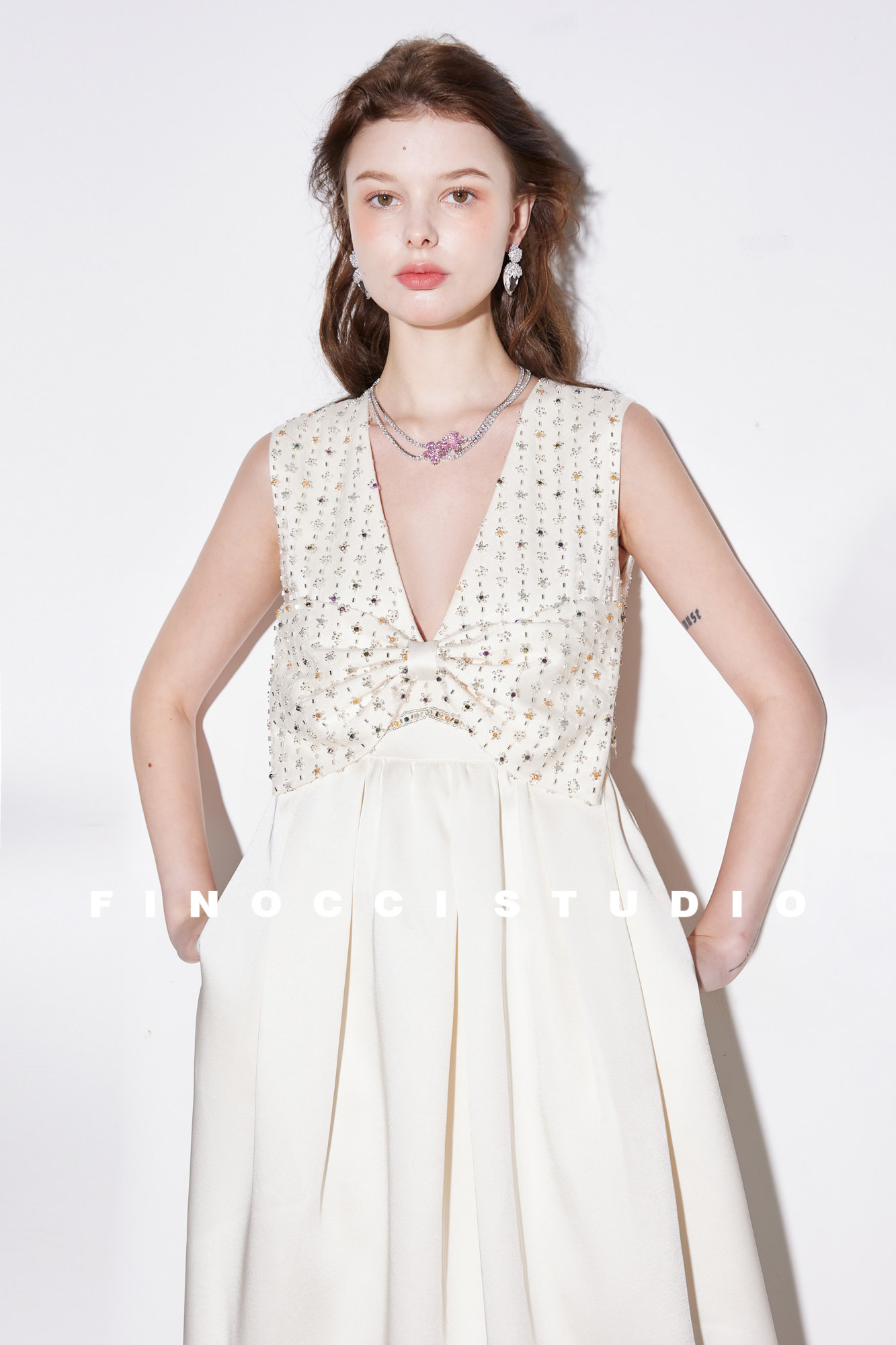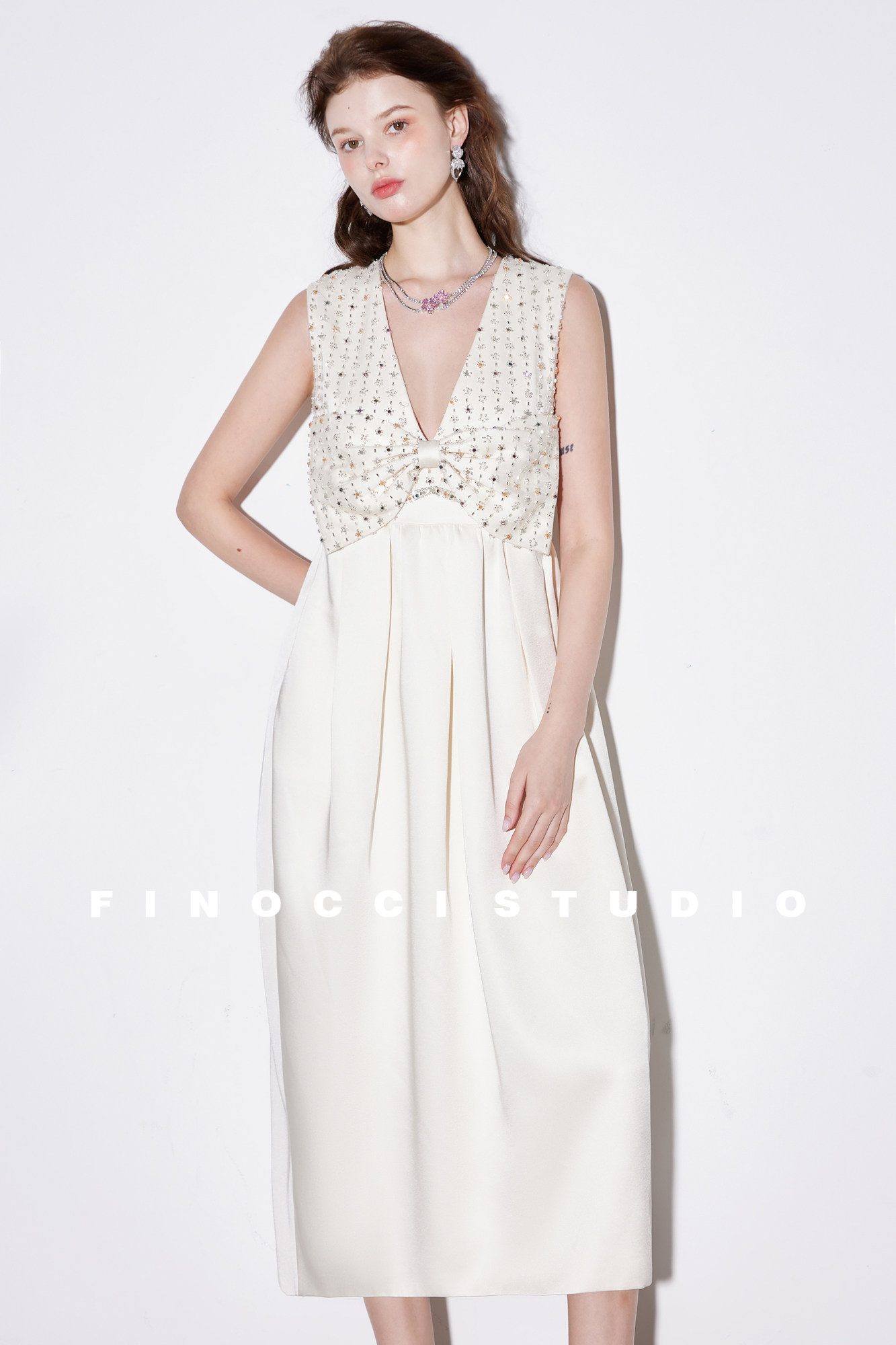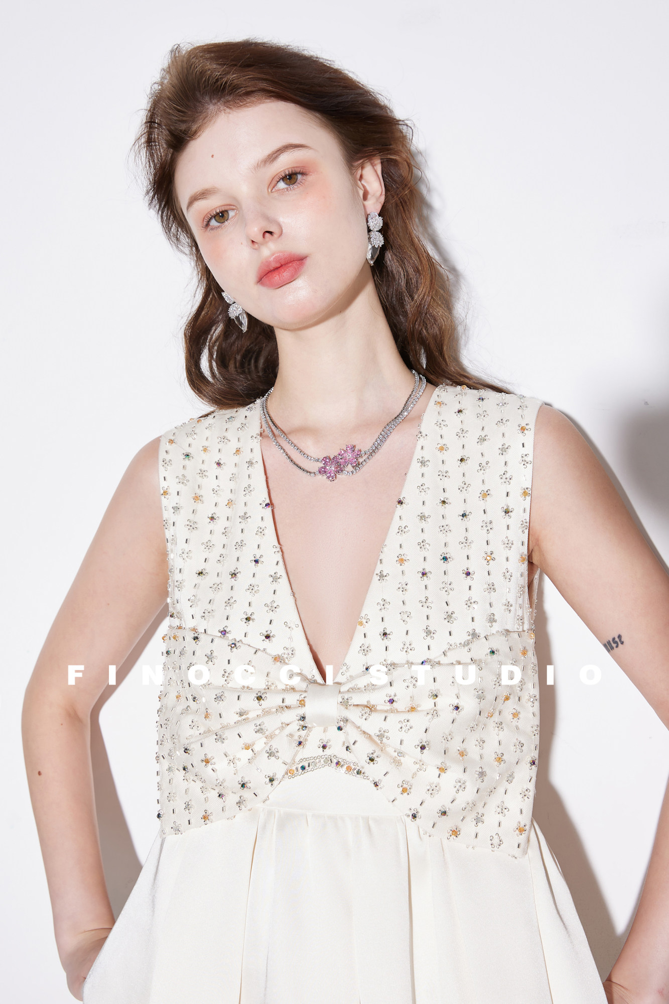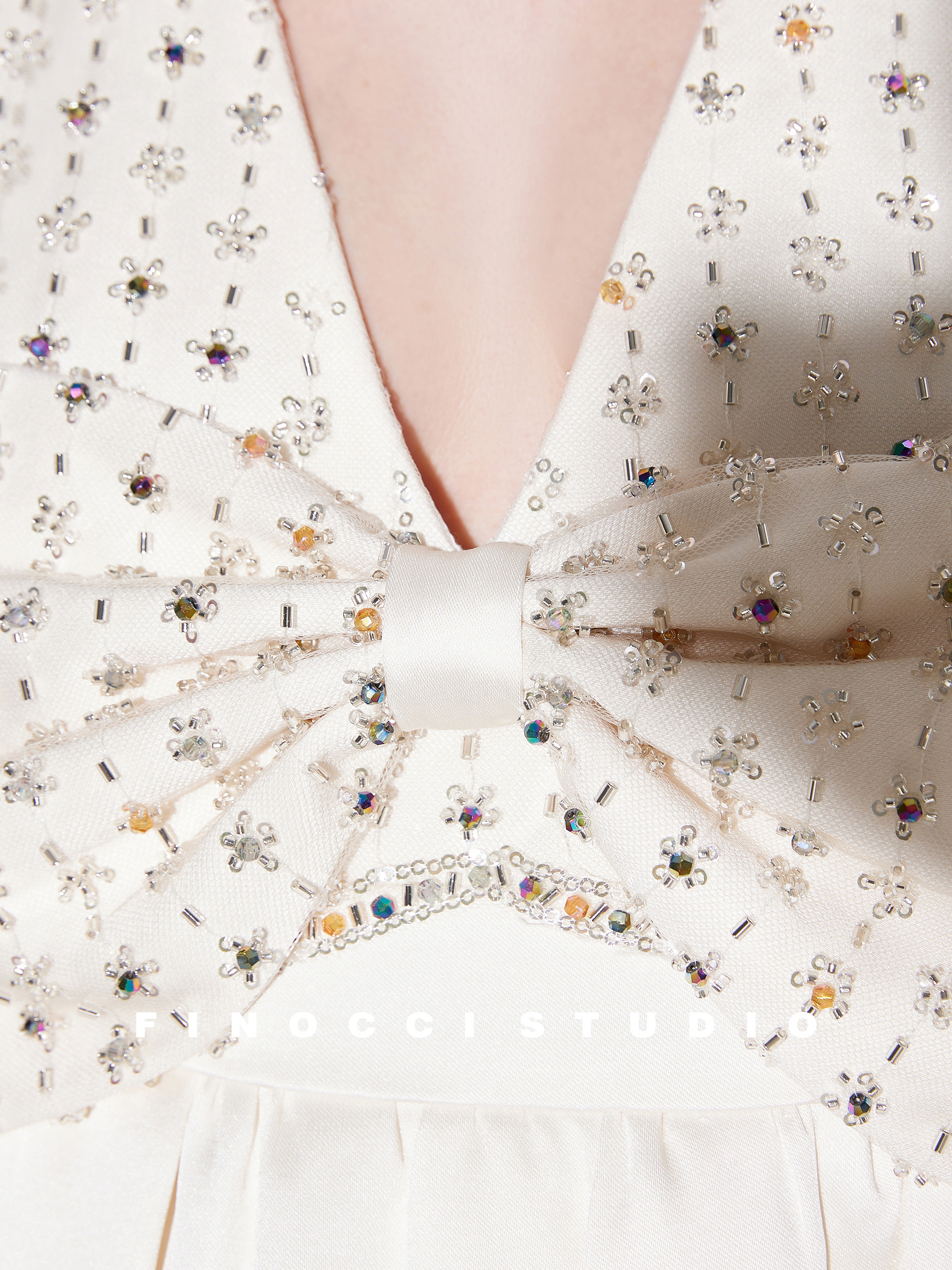 ASAYA6357 – Celeste Crystal Bow Midi Dress ✨🤍