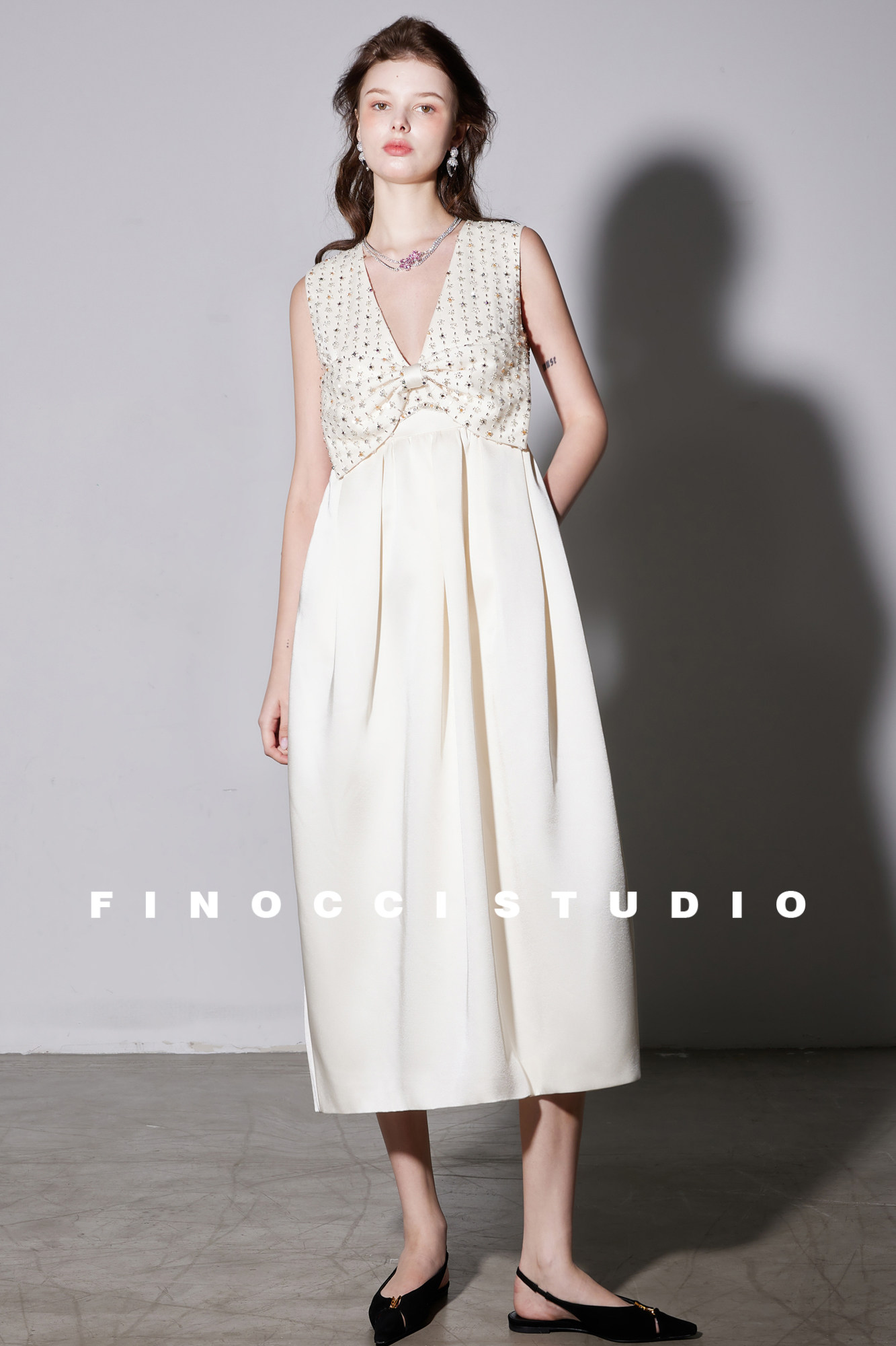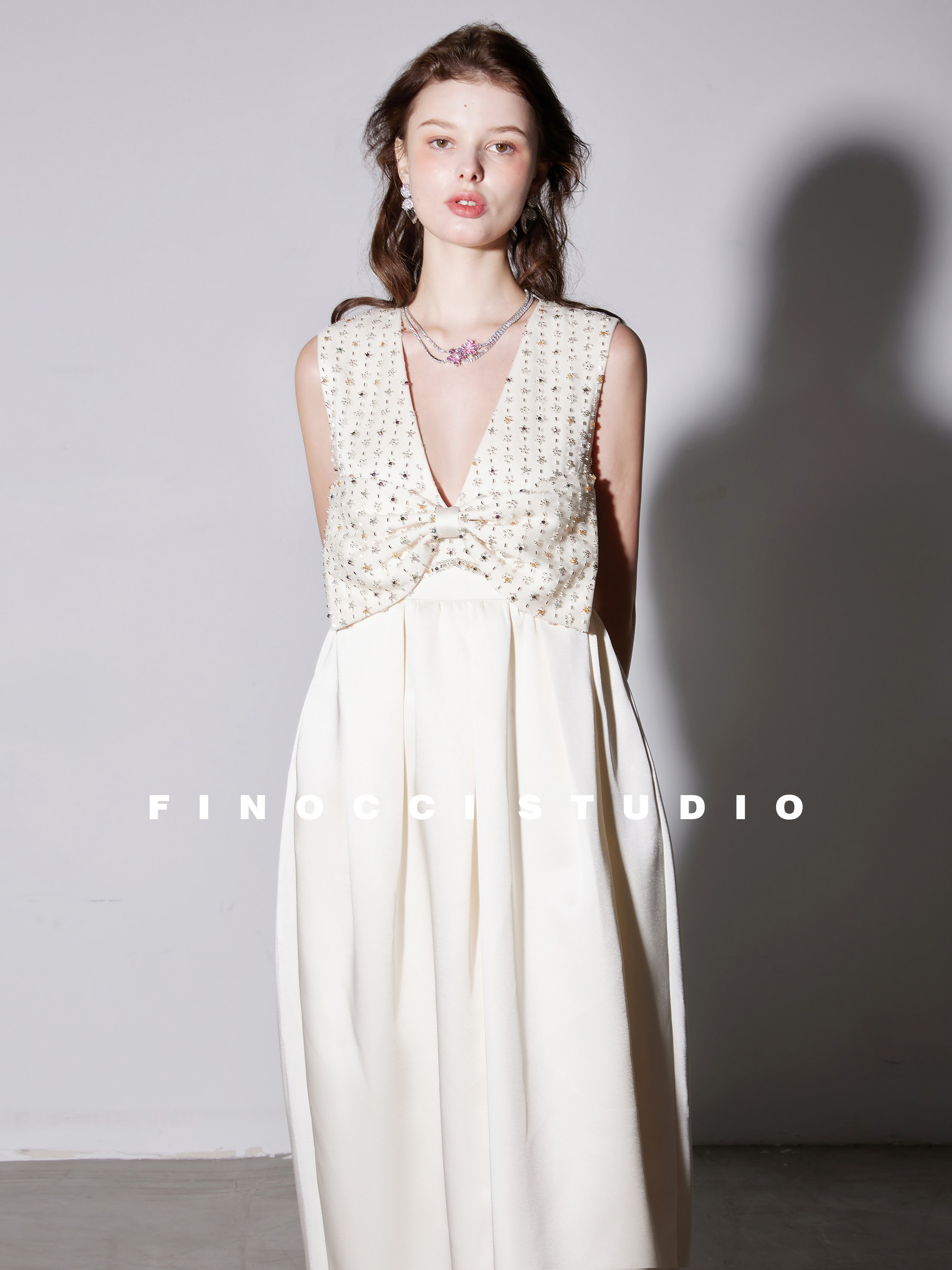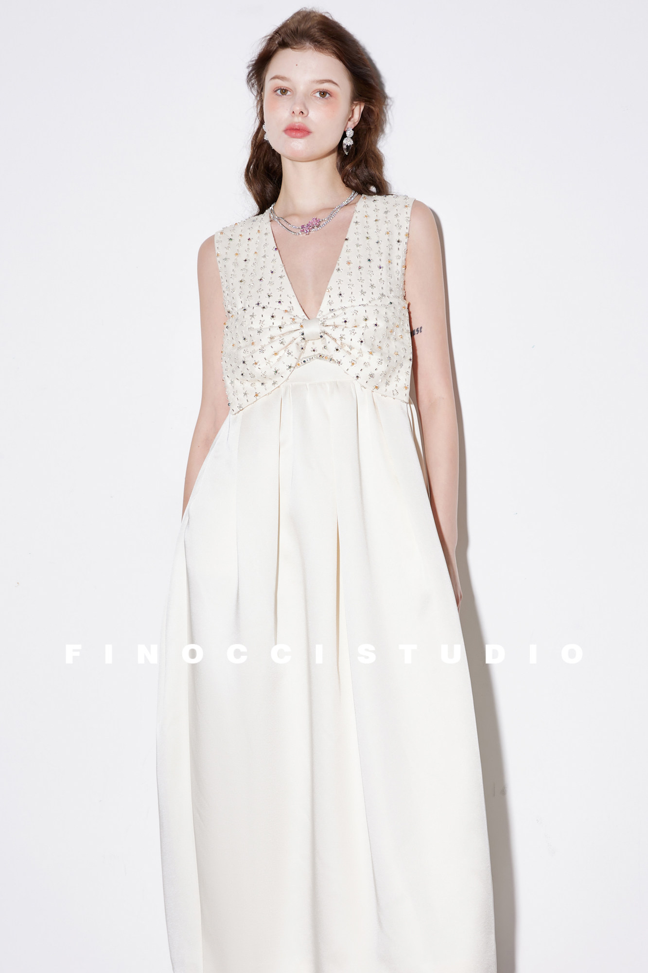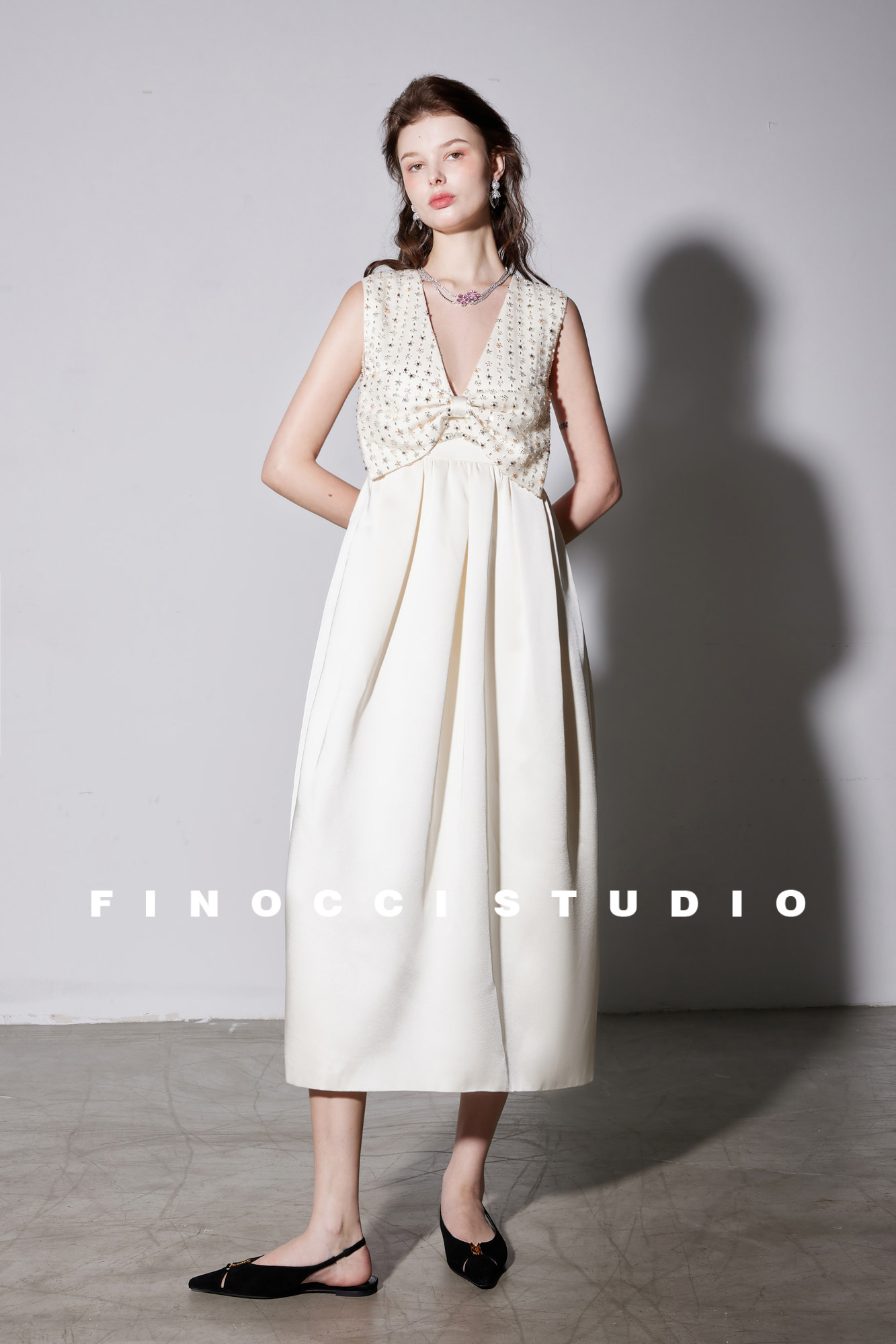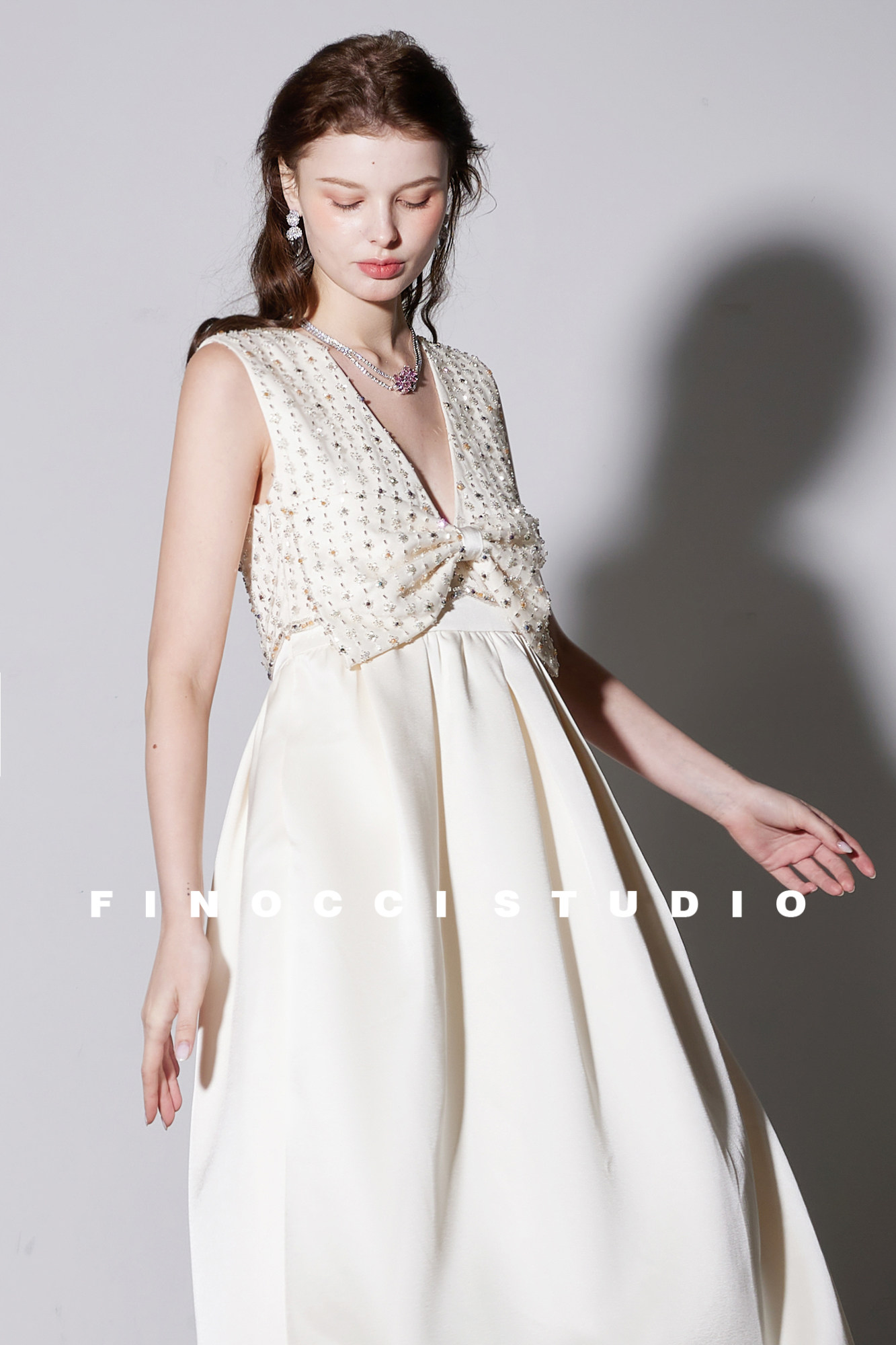 ASAYA6357 – Celeste Crystal Bow Midi Dress ✨🤍