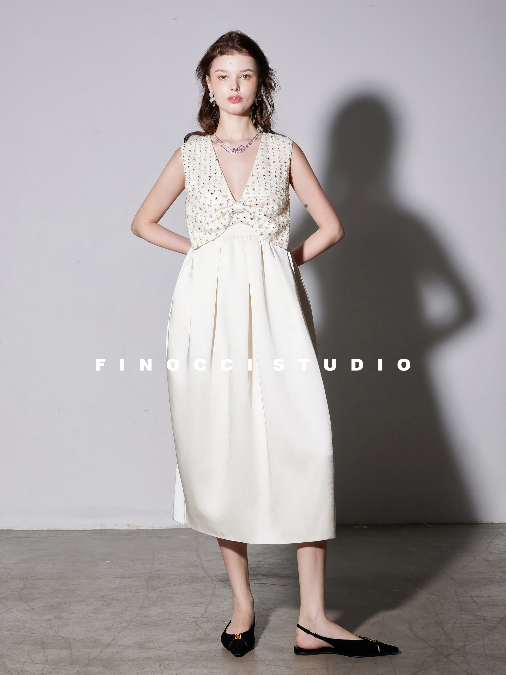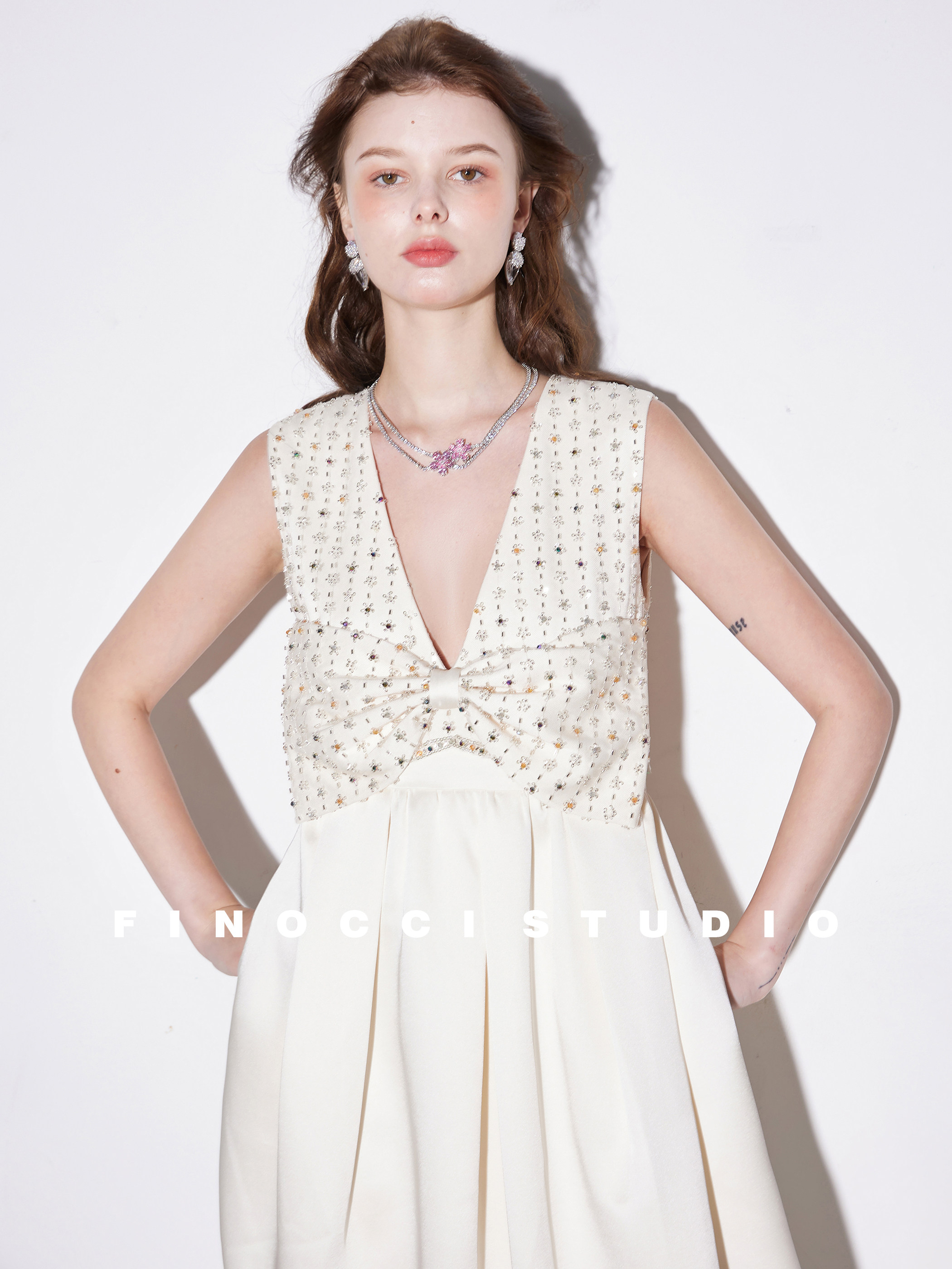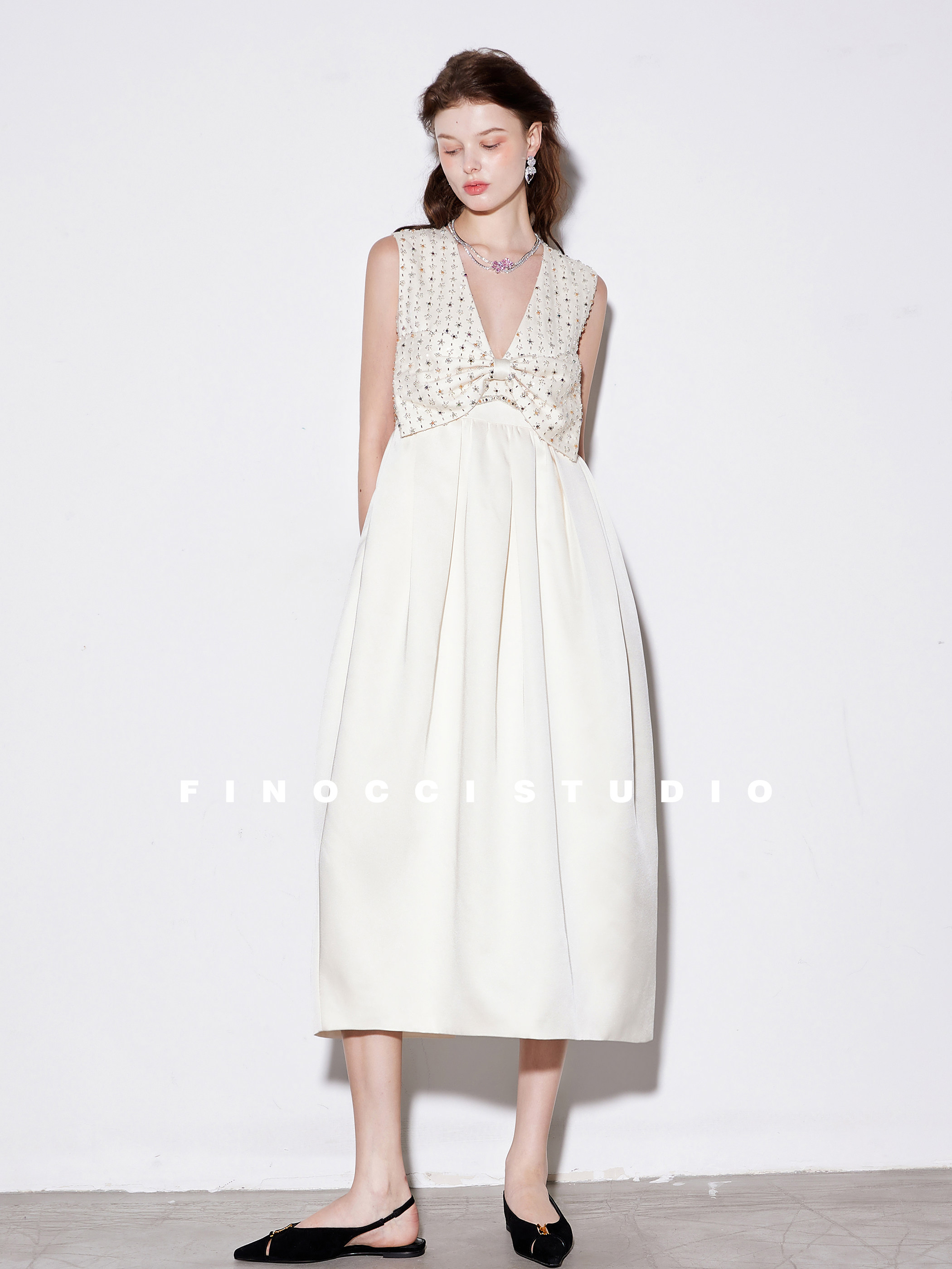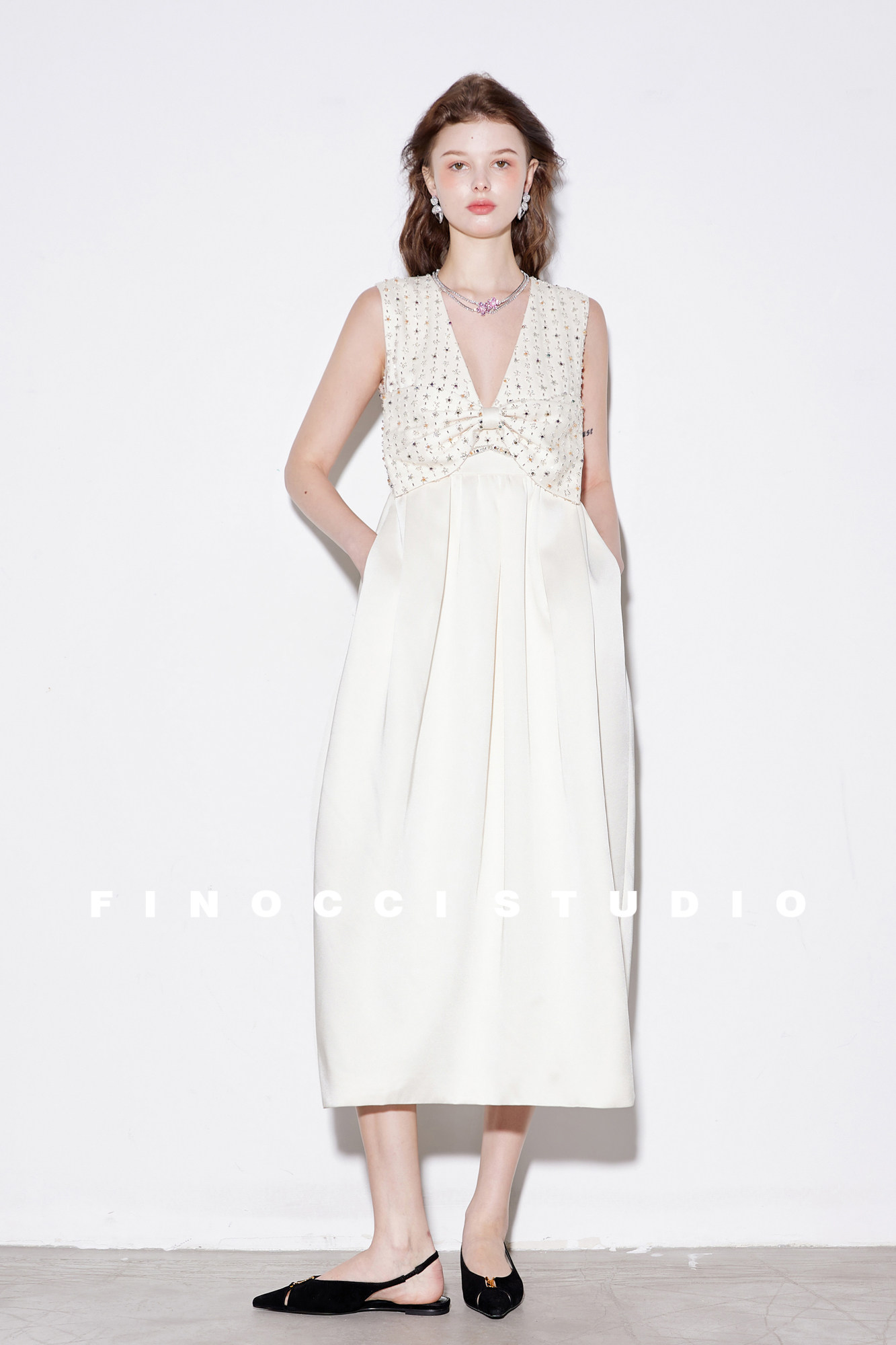 ASAYA6357 – Celeste Crystal Bow Midi Dress ✨🤍
