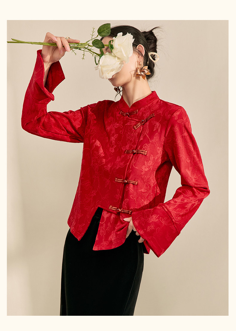 ASAYA5682 – Crimson Oriental Romance Blouse 🌹✨