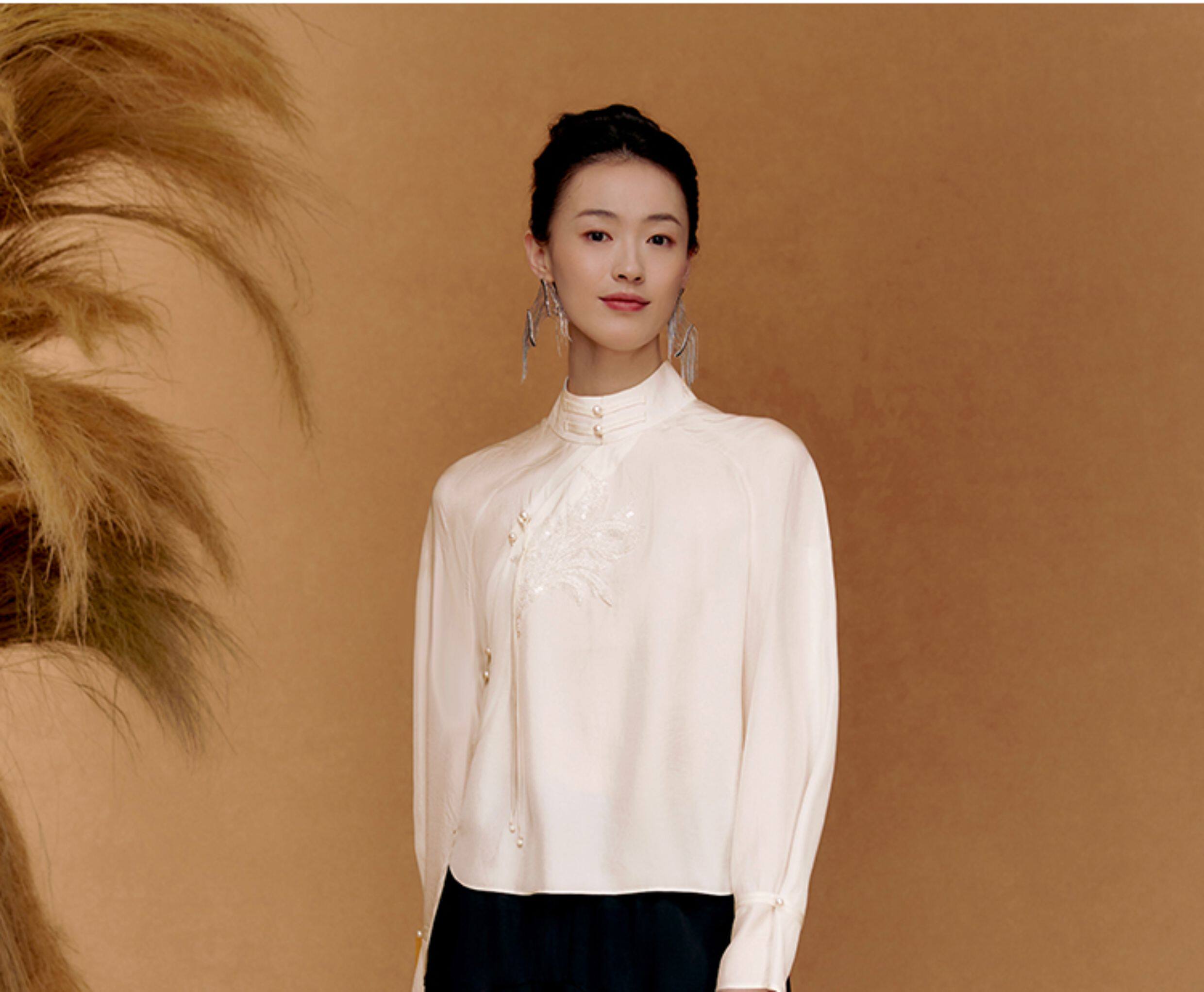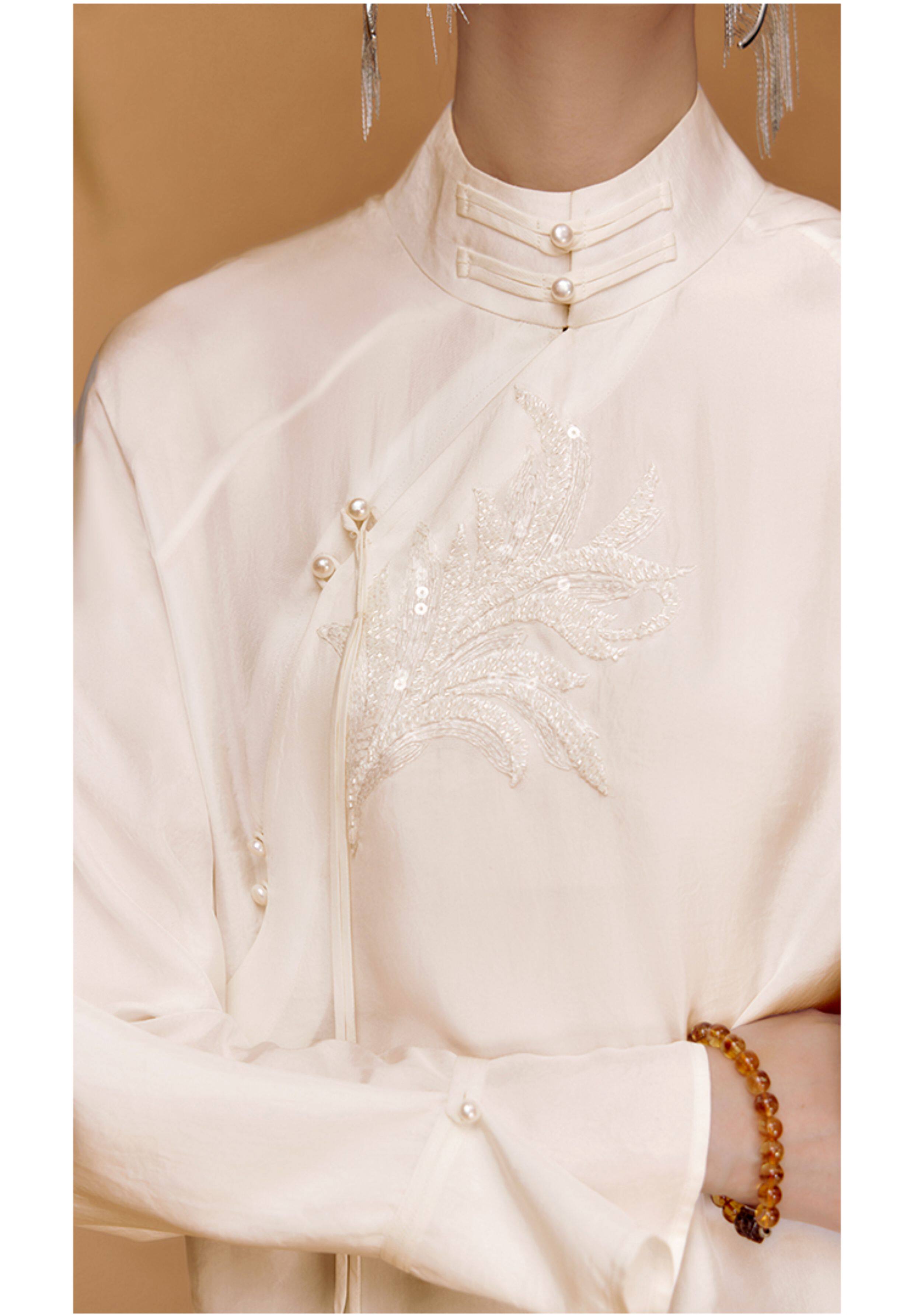 ASAYA5560 – Ivory Whisper Mandarin Blouse 🤍✨