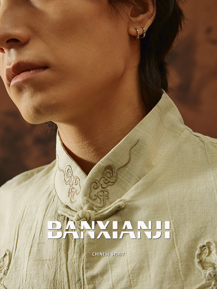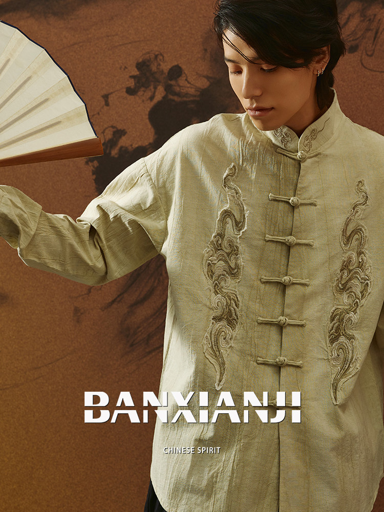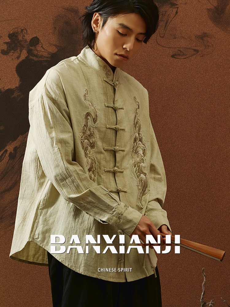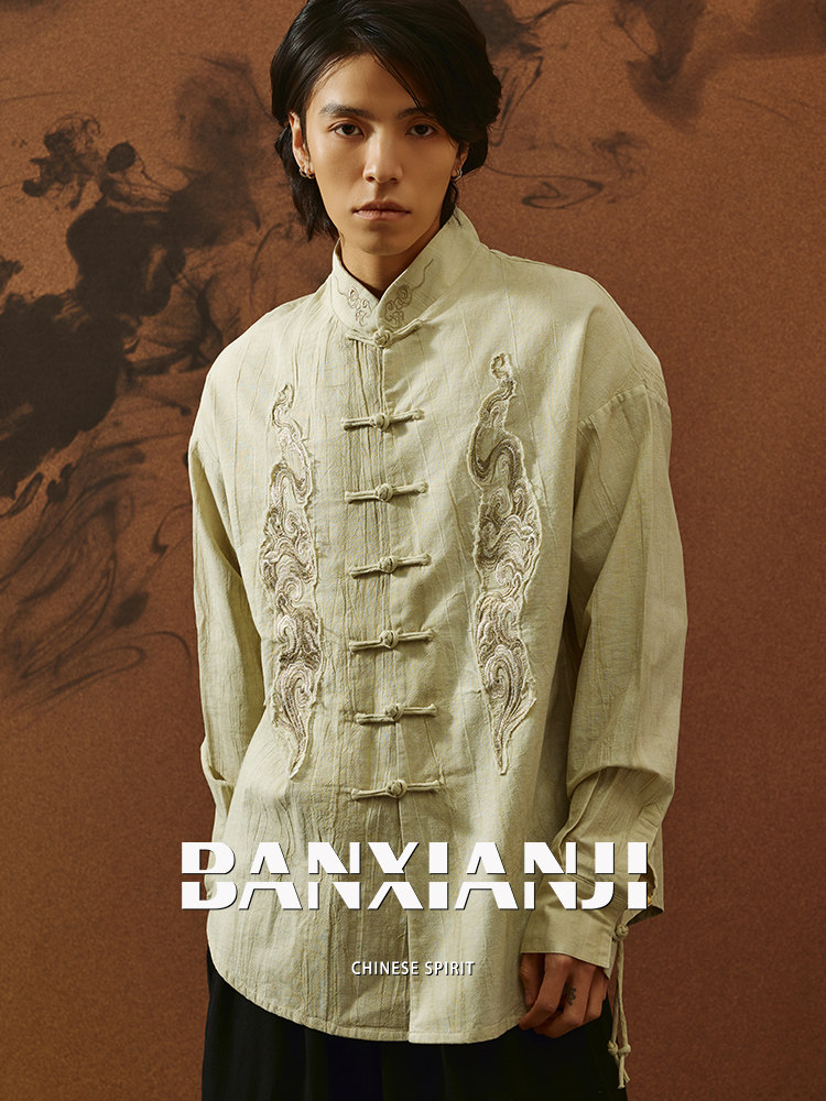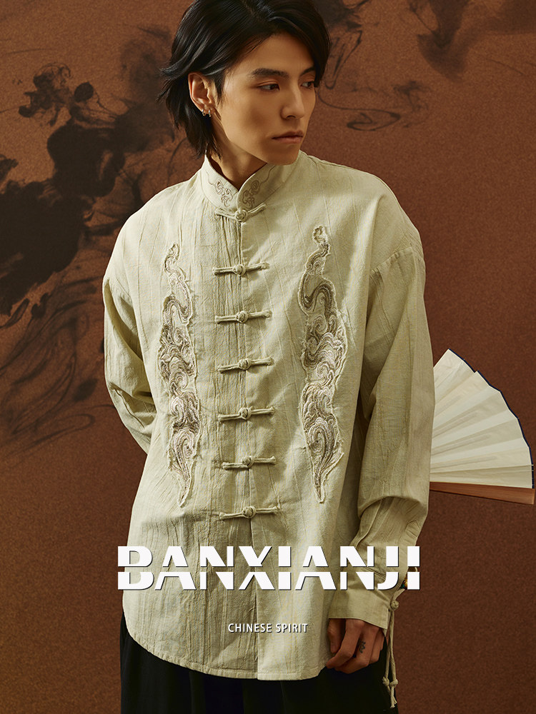 ASAYAHOMME1558 – Cloud Dragon Embroidered Tang Shirt ☁️🐉