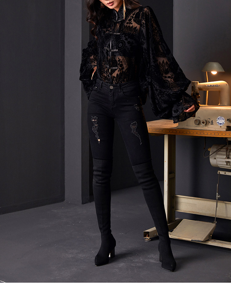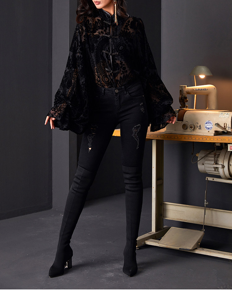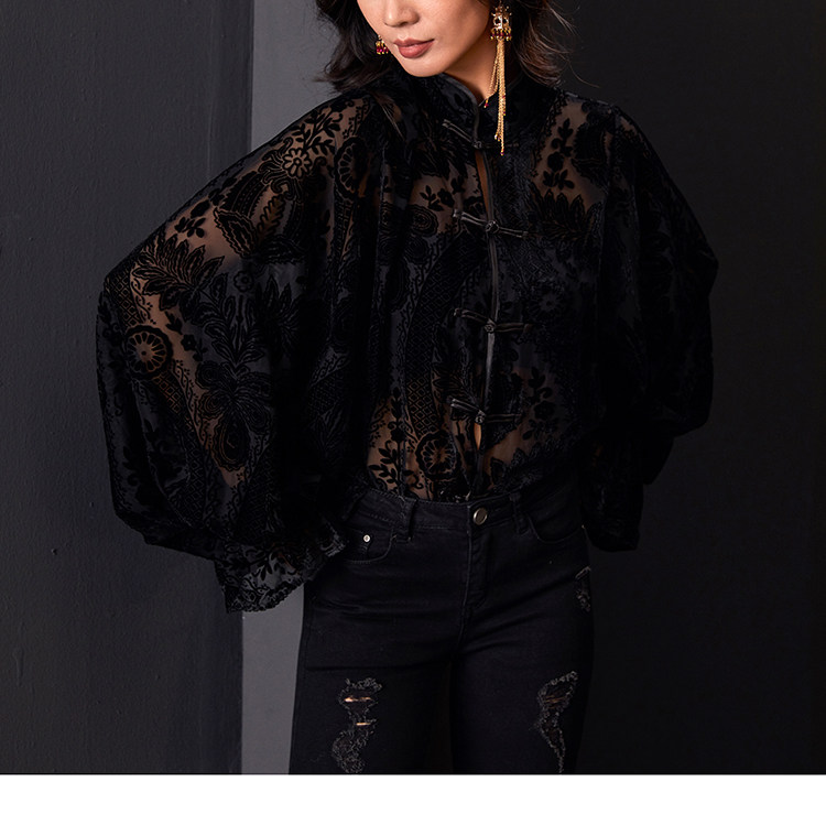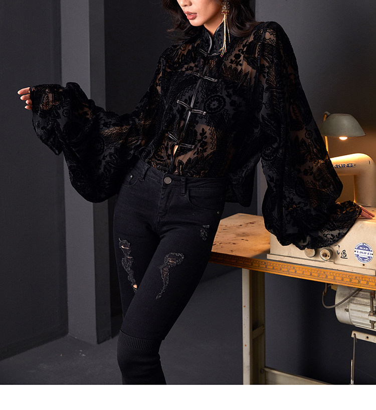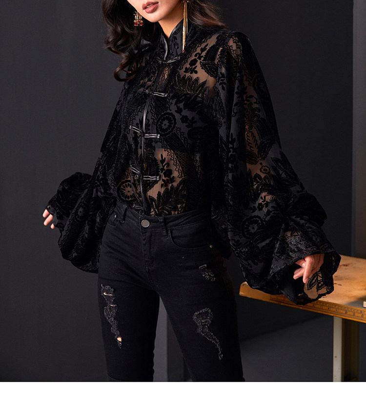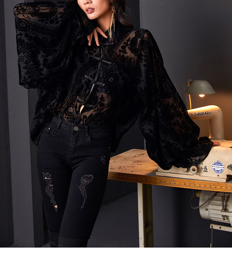 | Item number | Rotten velvet black button princess sleeve shirt |