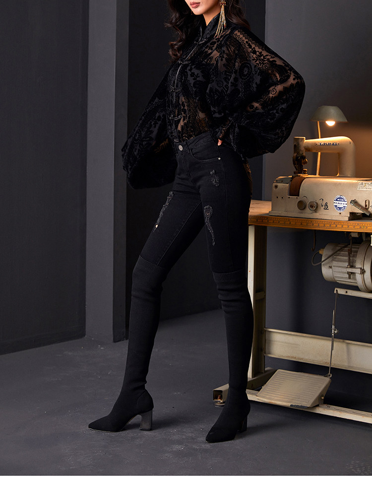 ASAYA5613 – Noir Lace Mandarin Blouse 🖤🕯️