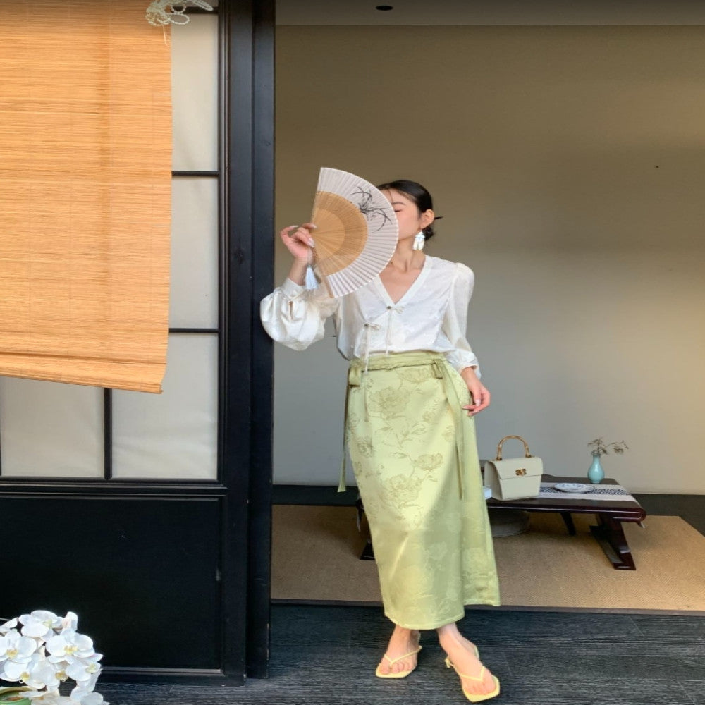 ASAYA3452 Light Green Chinese Style High Waist Skirt