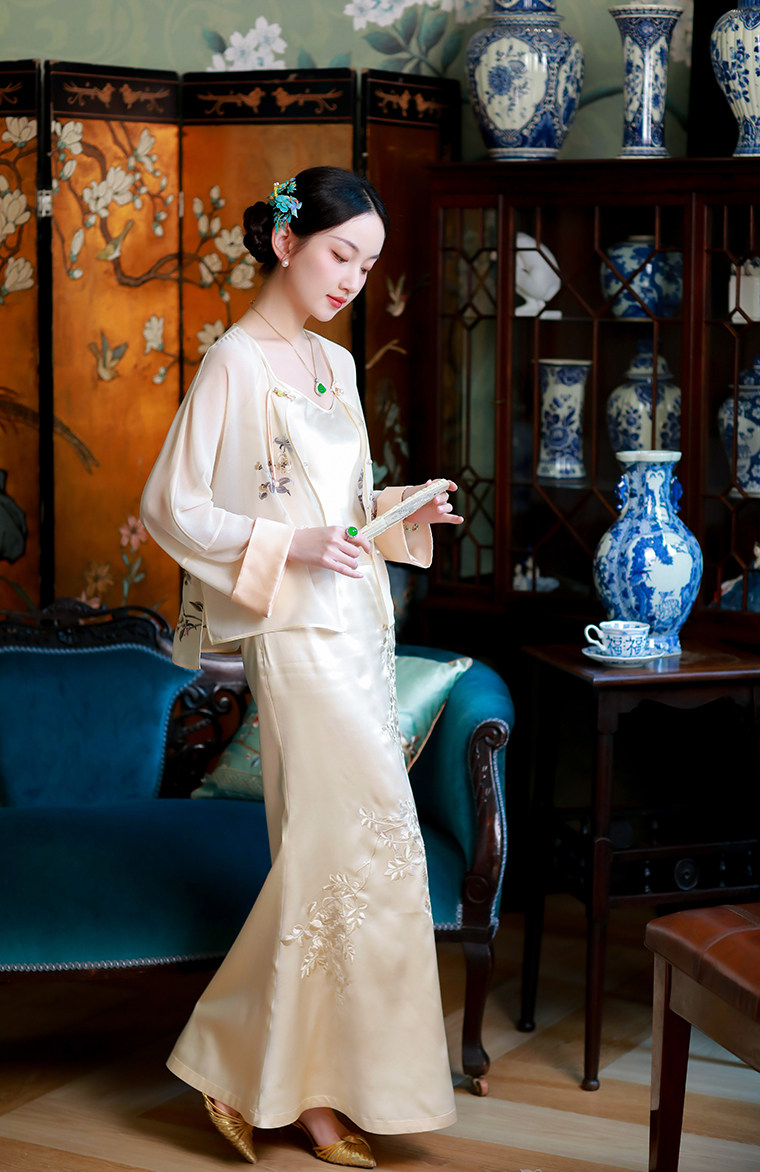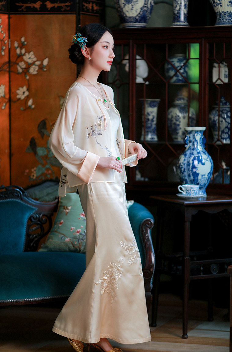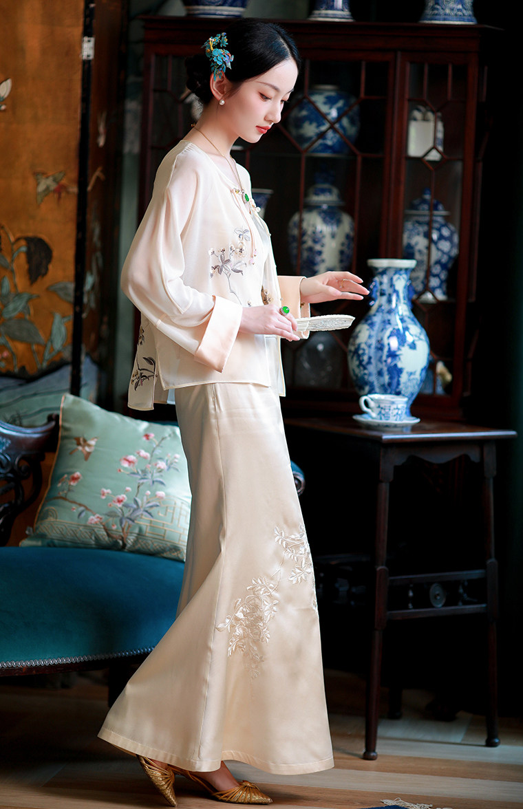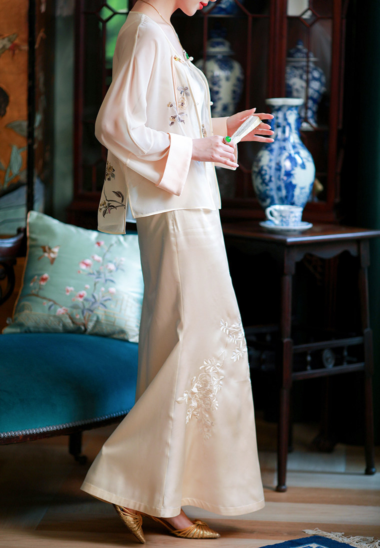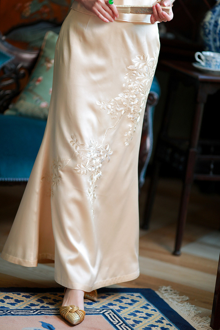 ASAYA5625 – Ivory Blossom Silk Skirt 🌸🤍