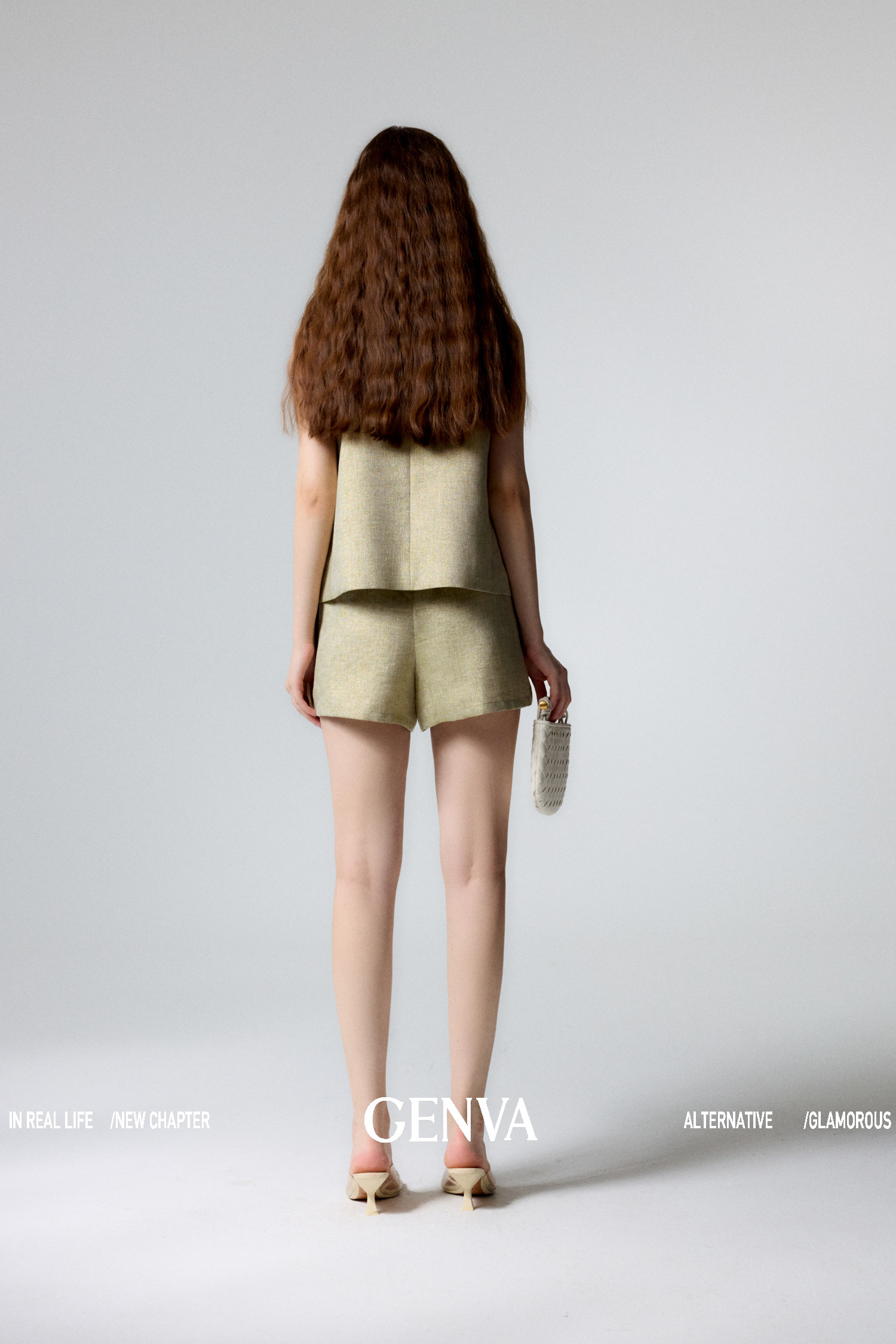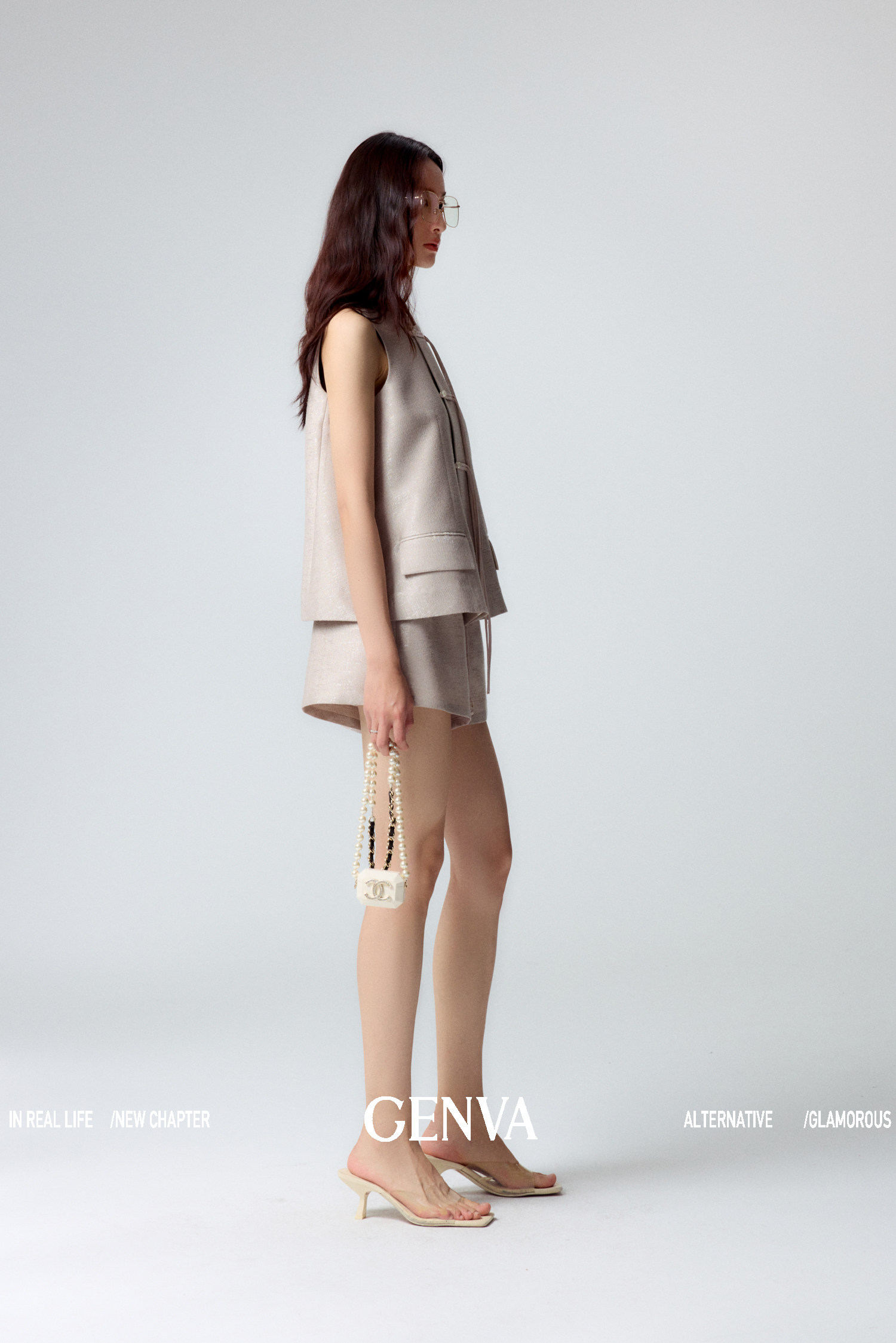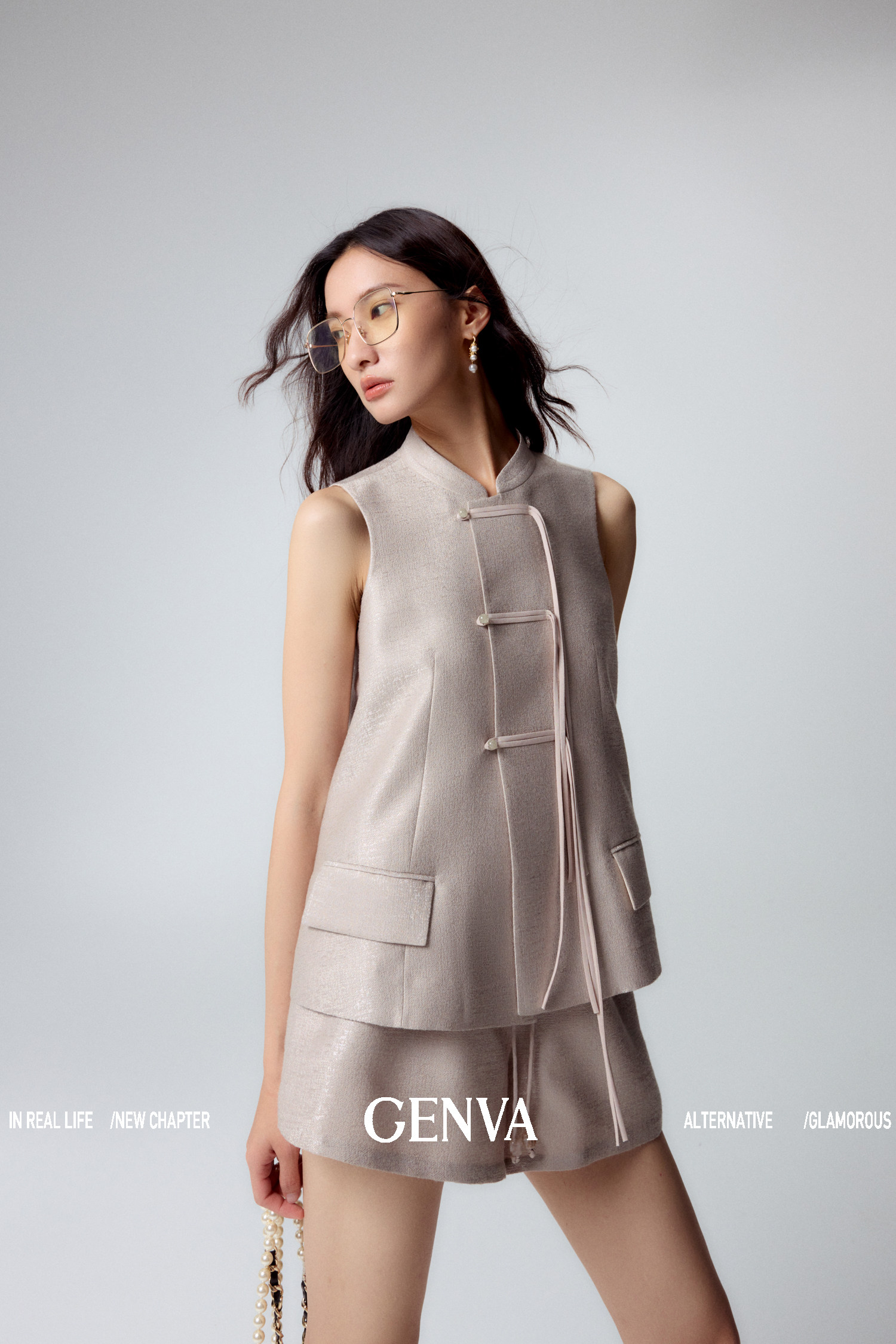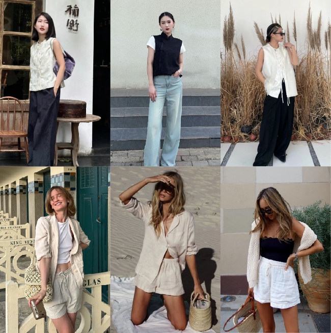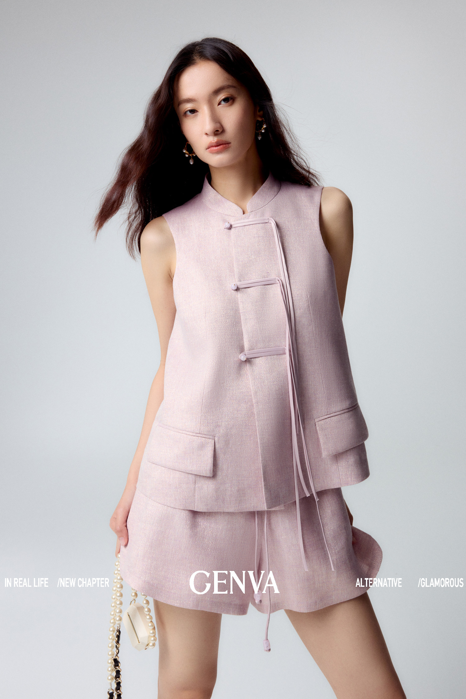 悦然定格 新中式飘带盘扣马甲+短裤套装