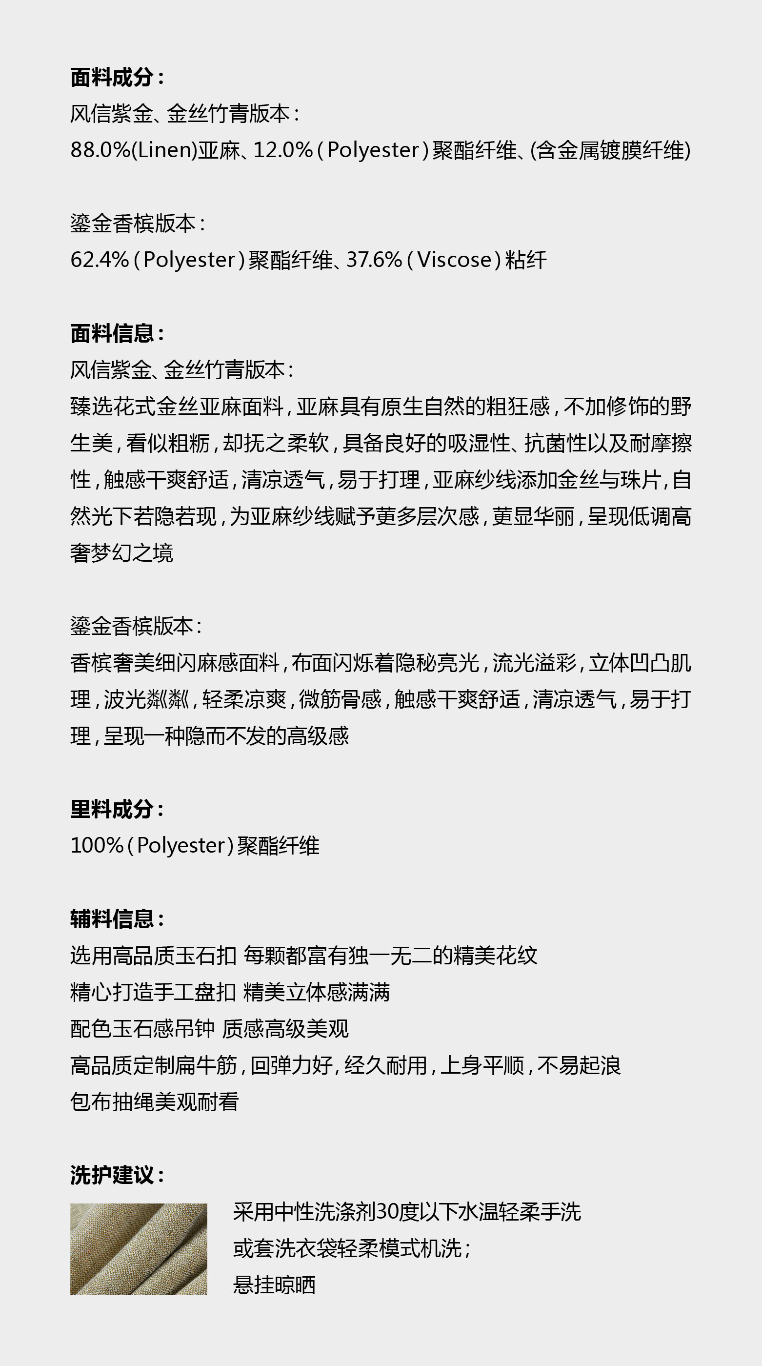 香槟奢美细闪麻感面料