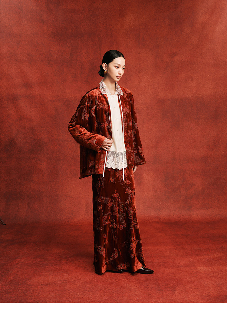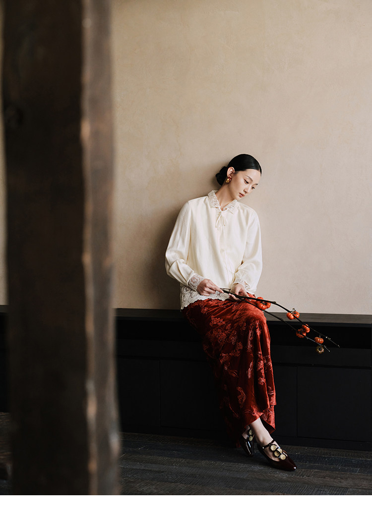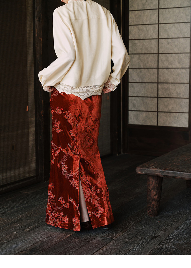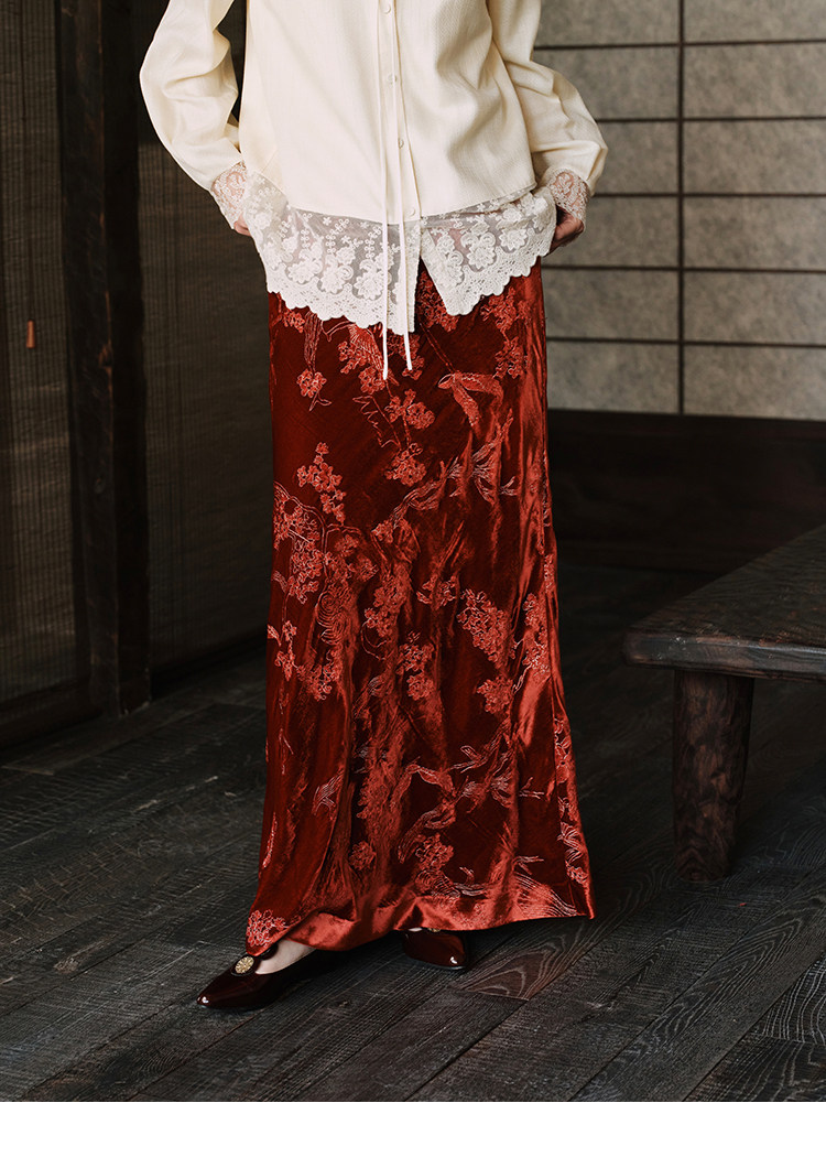 ASAYA5937 – Crimson Silk Embroidered Skirt 🍷🌺