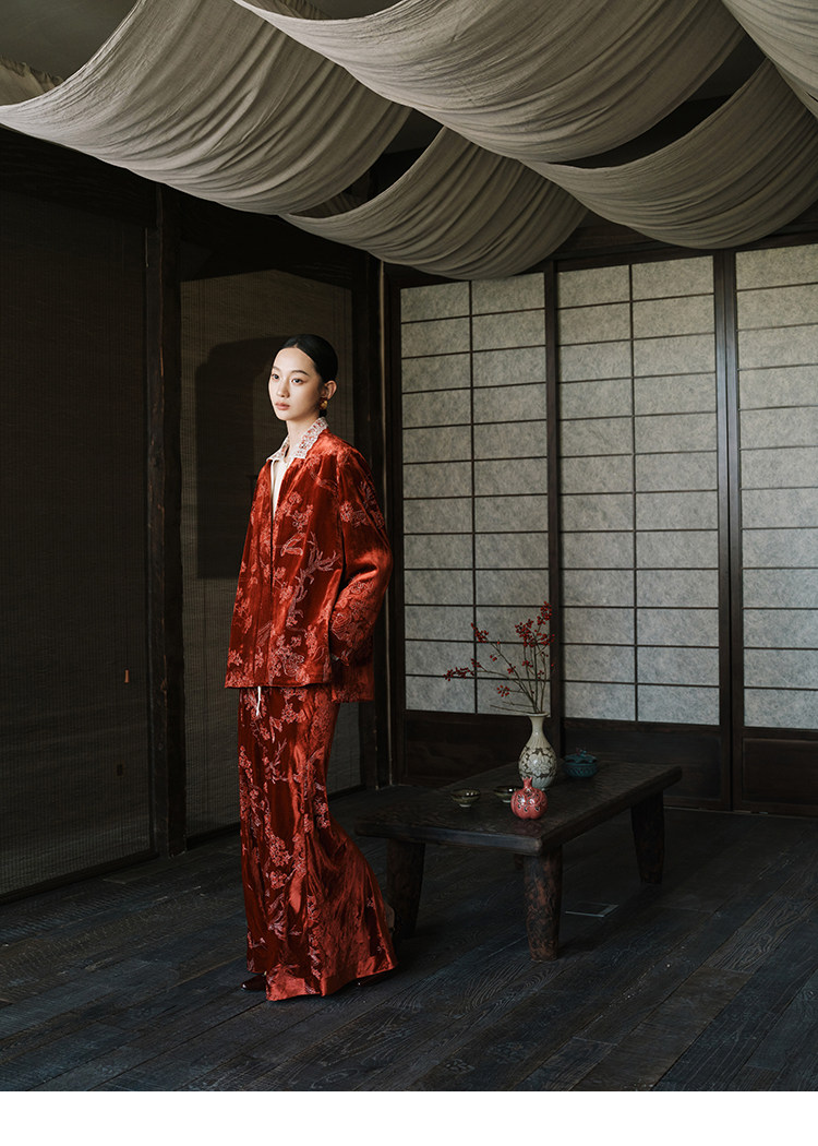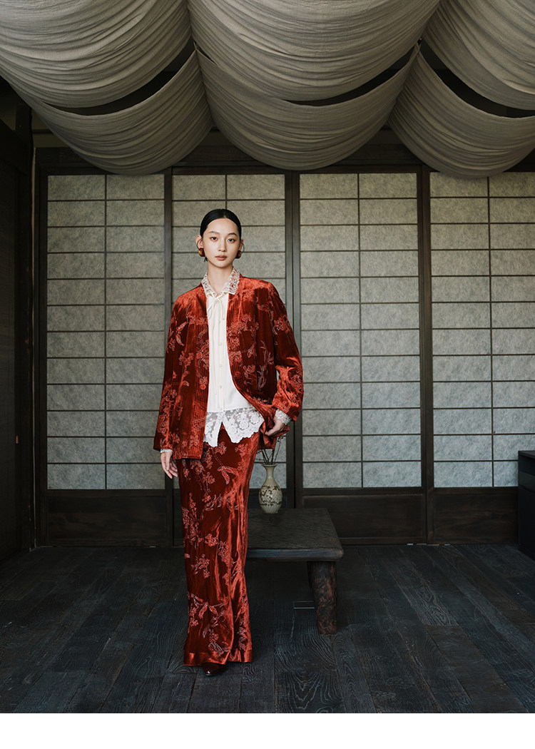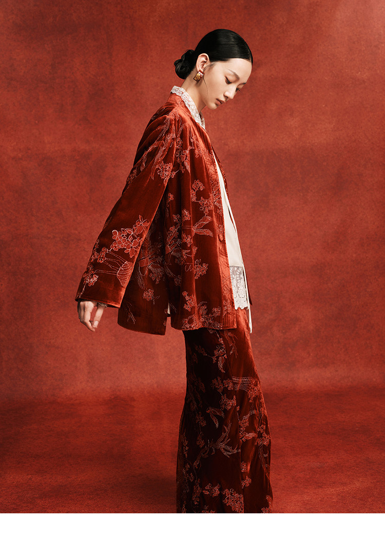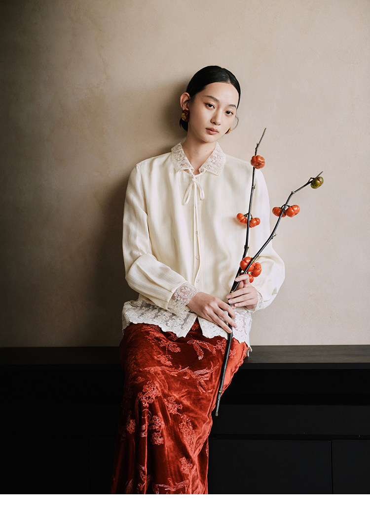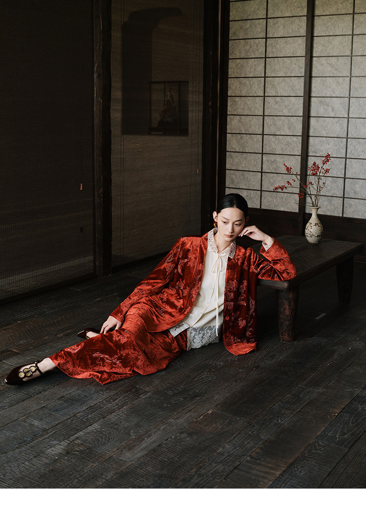 ASAYA5937 – Crimson Silk Embroidered Skirt 🍷🌺