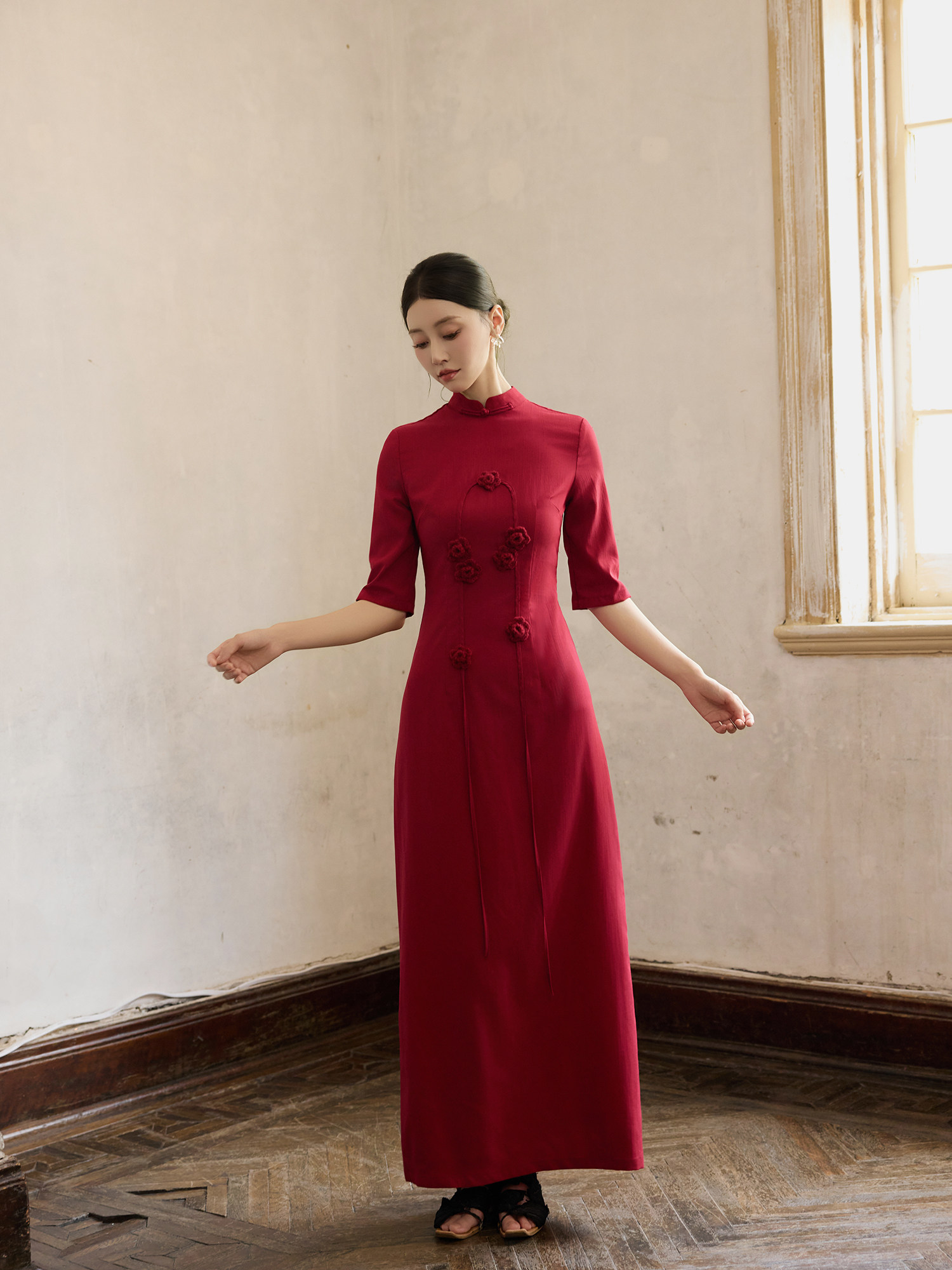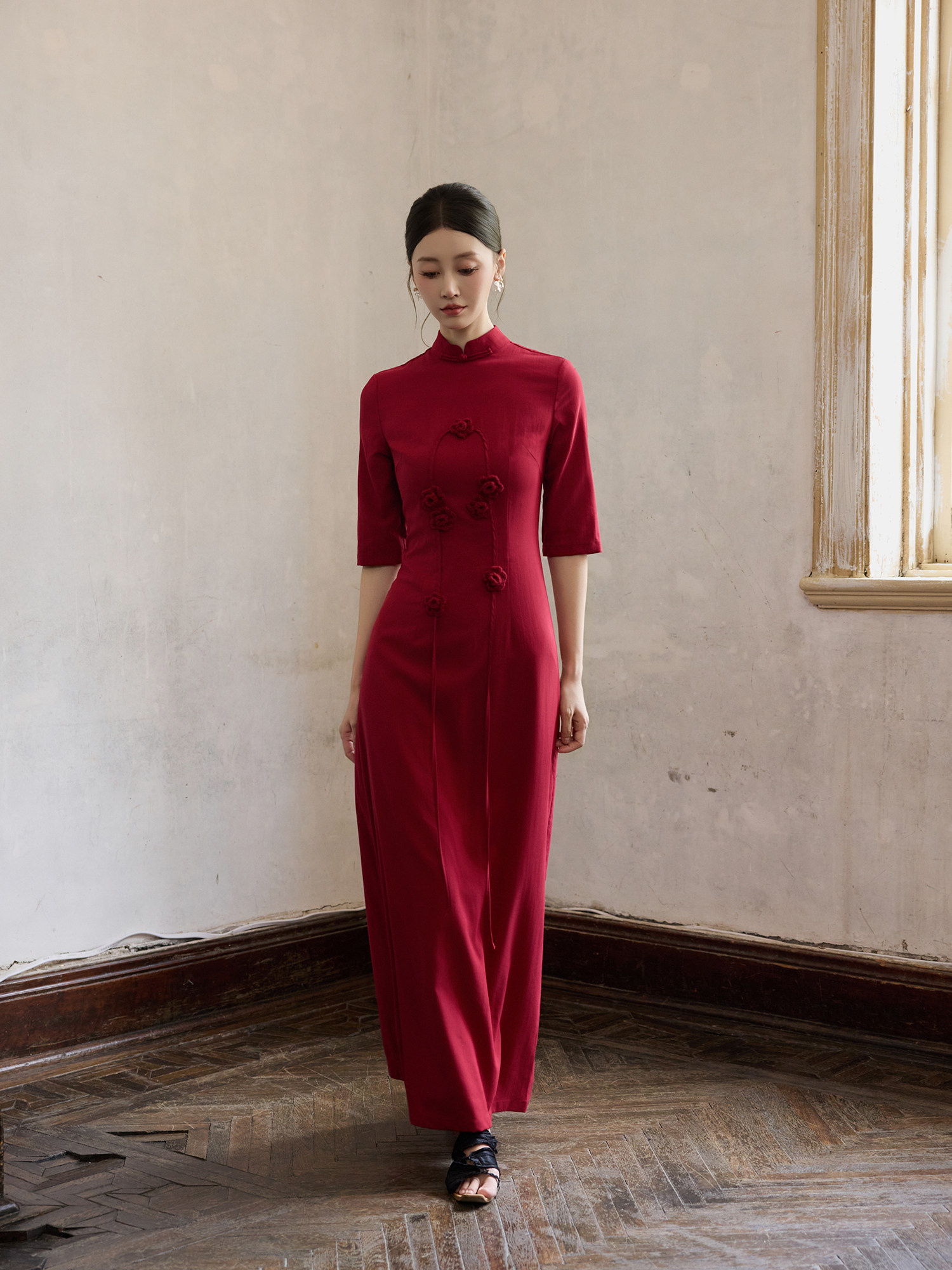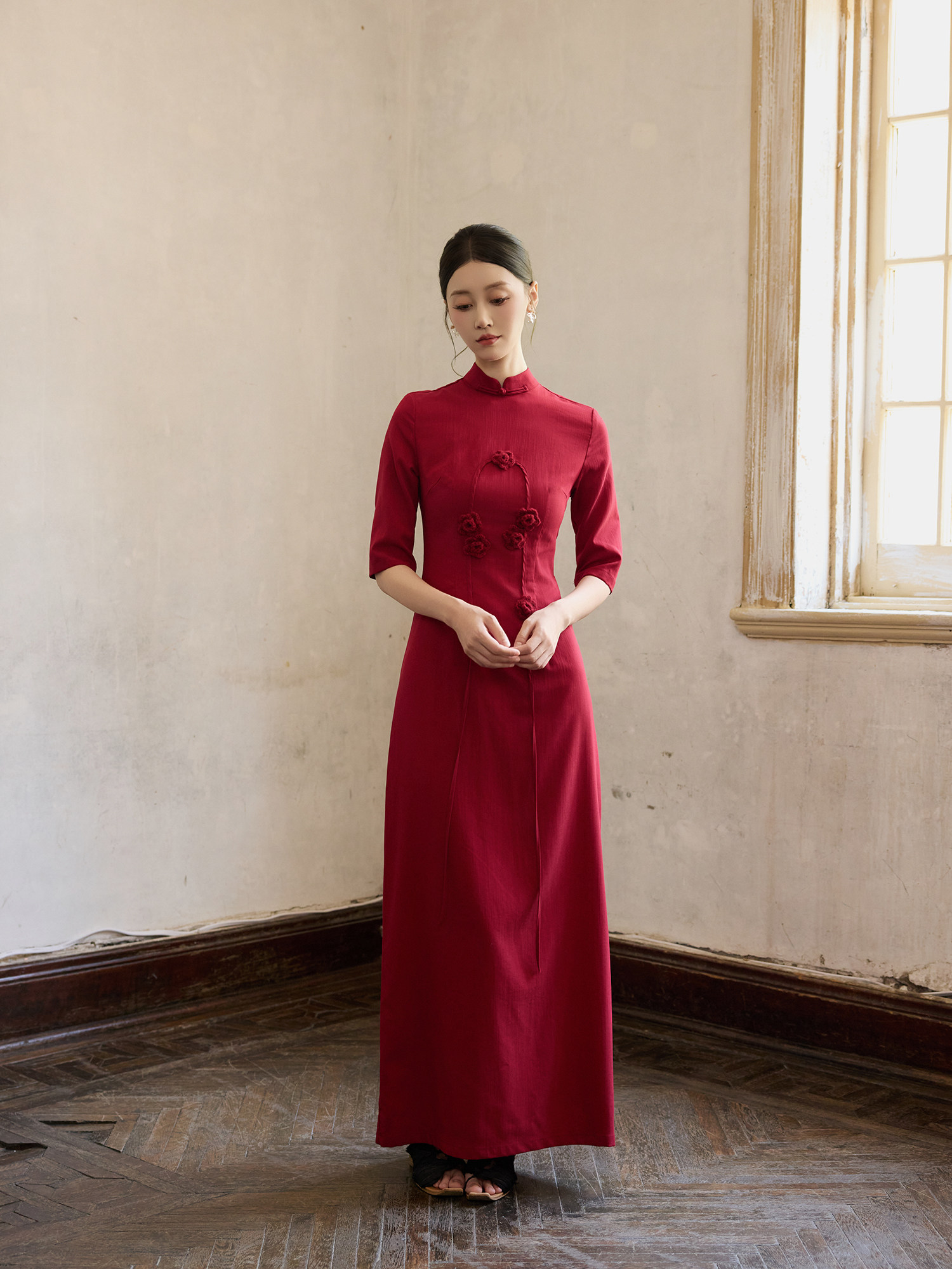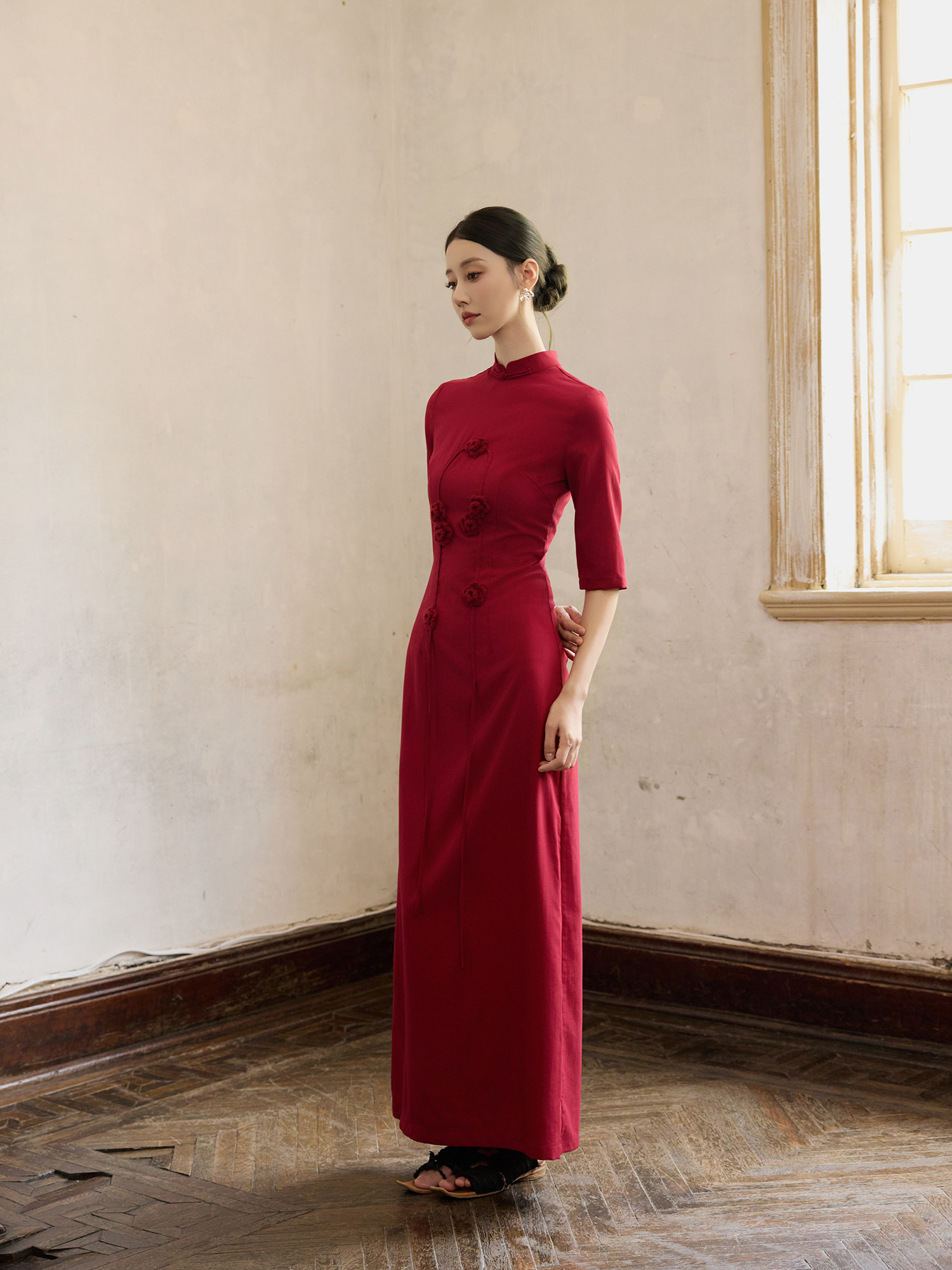 ASAYA5589 – Crimson Bloom Qipao Dress 🌹❤️