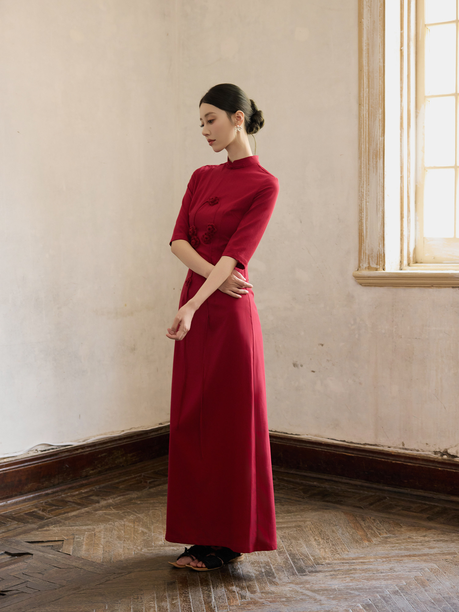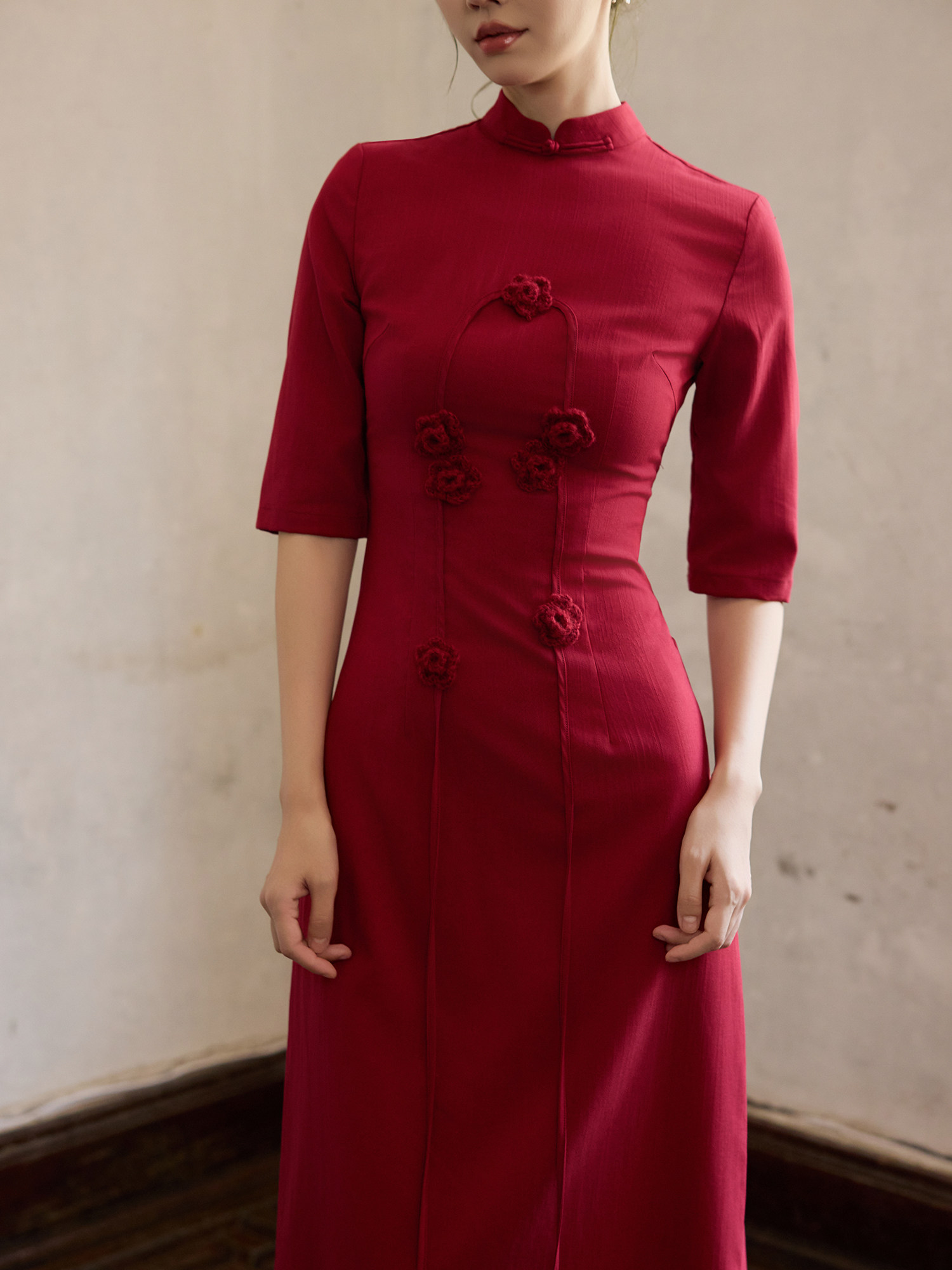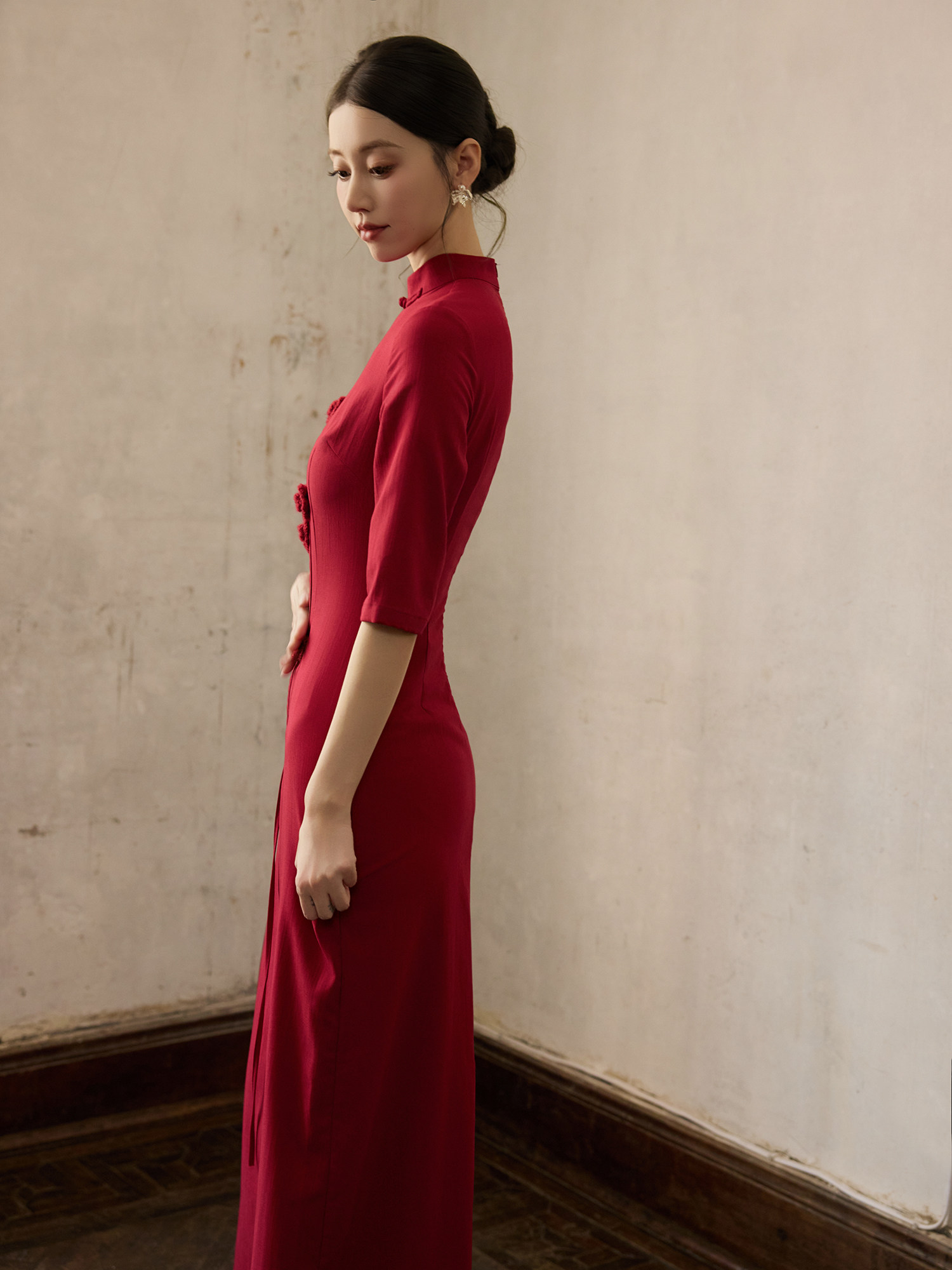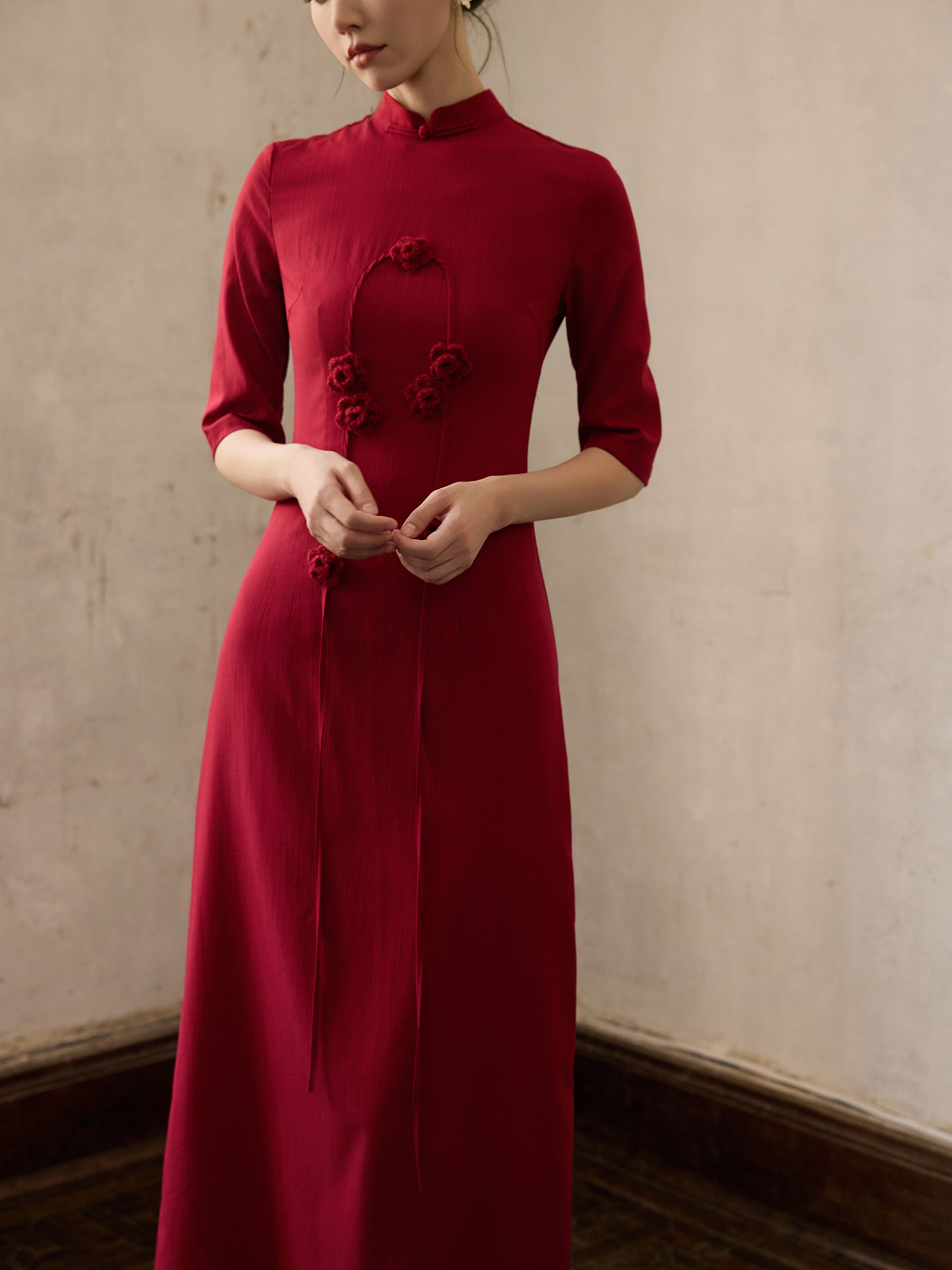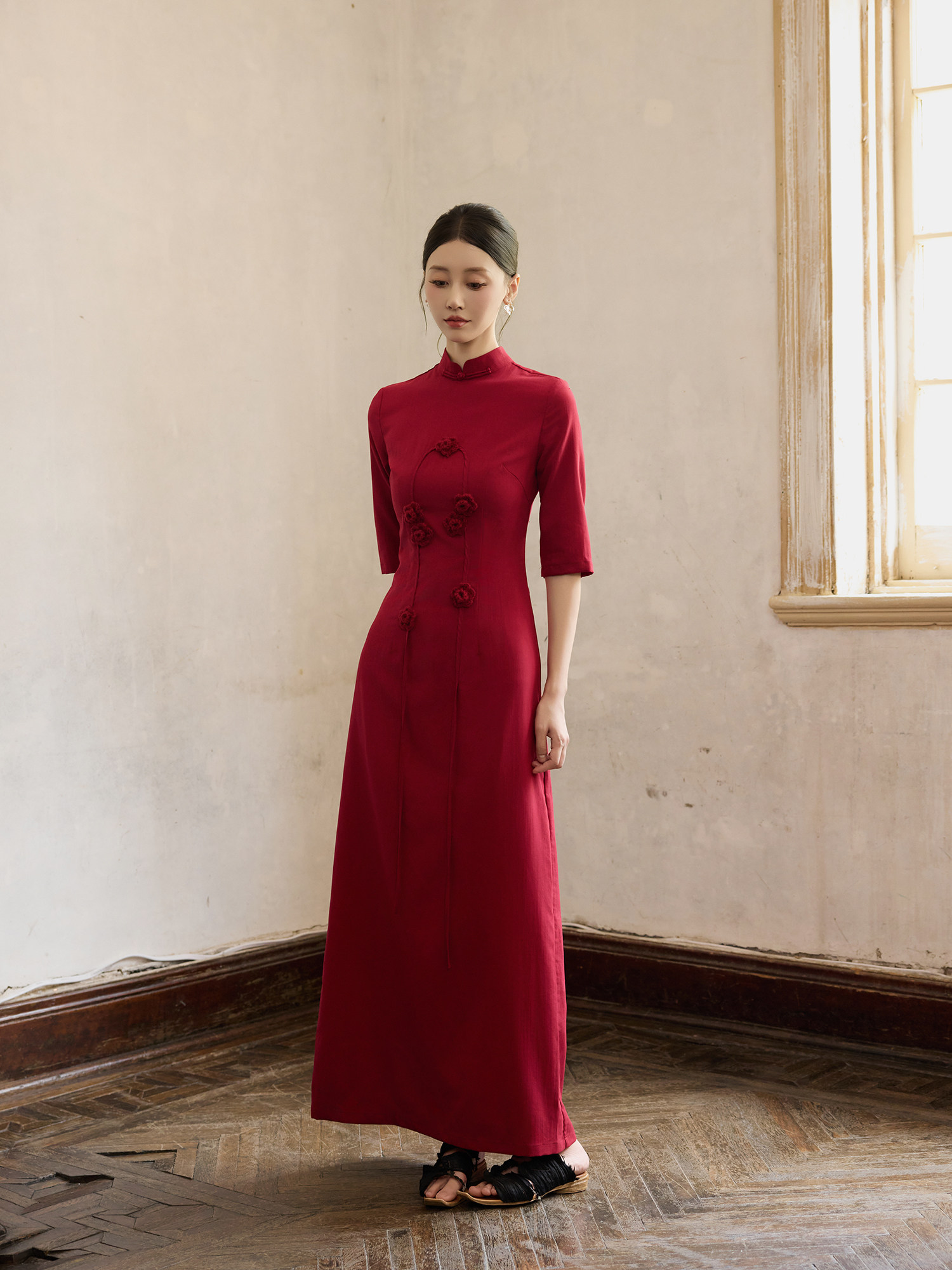 ASAYA5589 – Crimson Bloom Qipao Dress 🌹❤️