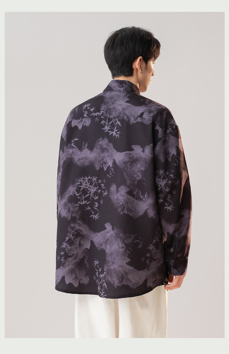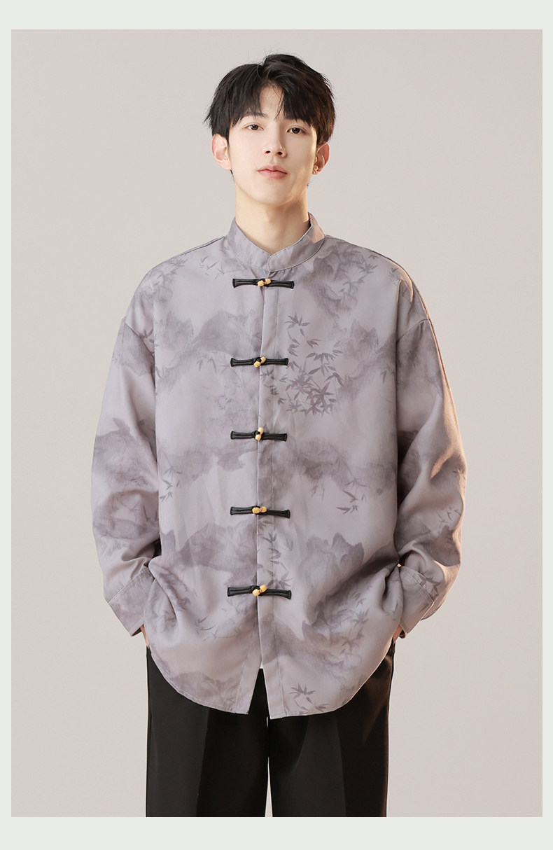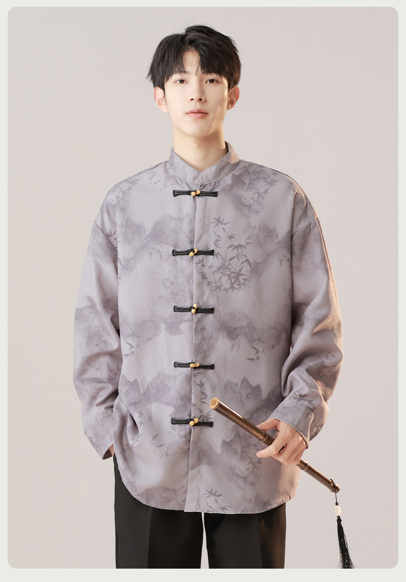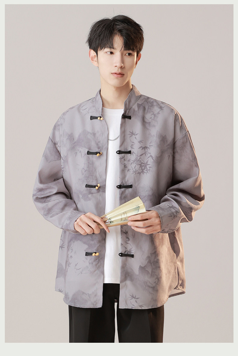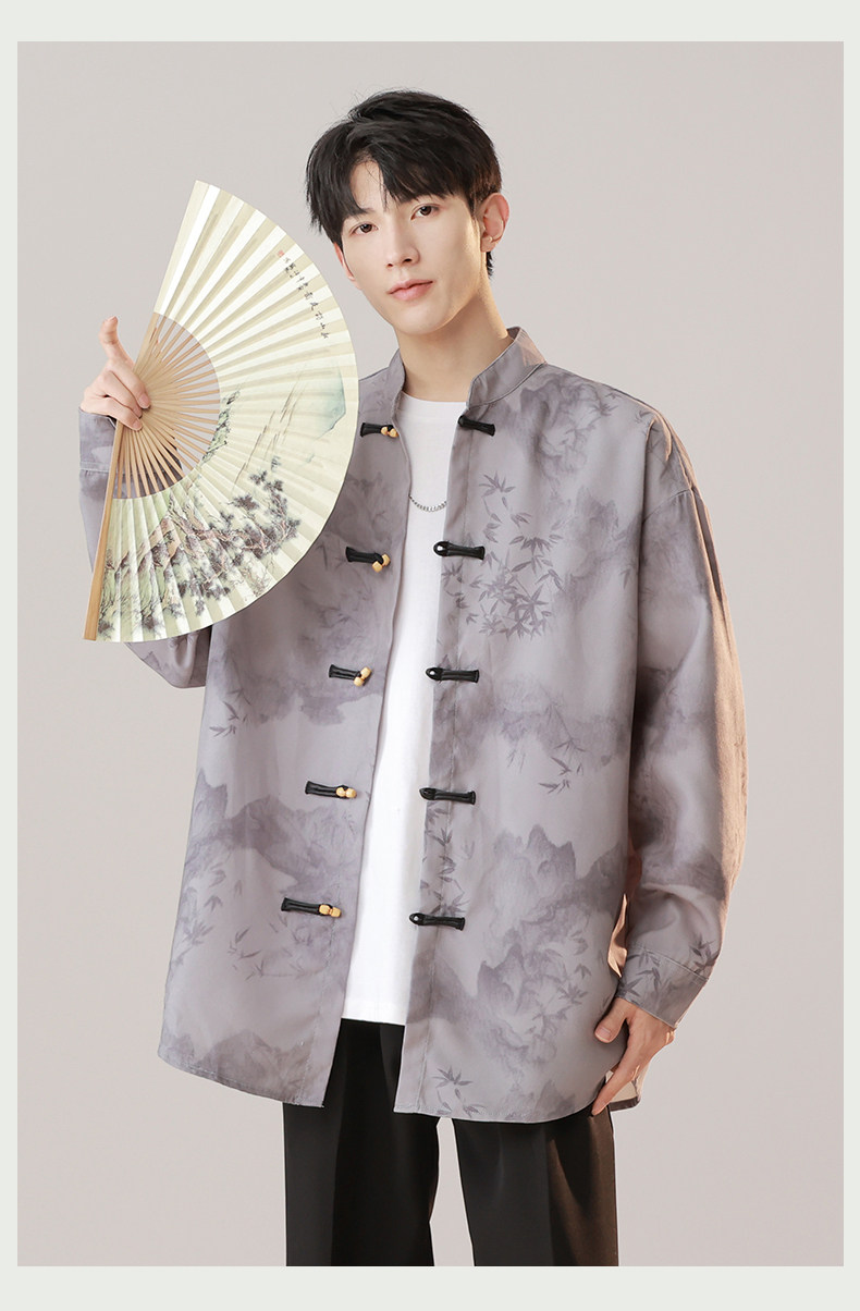 ASAYAHOMME1579 – Ink Mist Mandarin Shirt 🌫️🖤