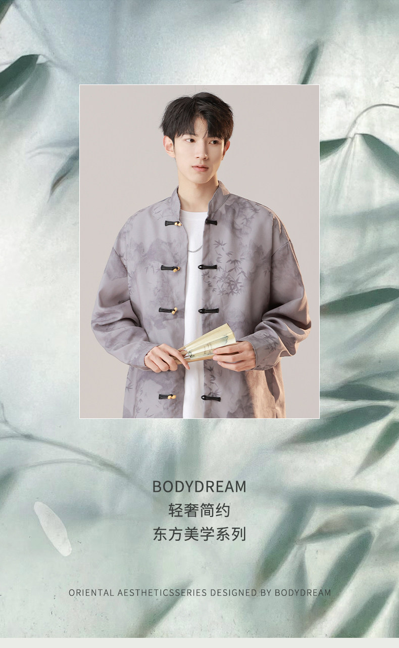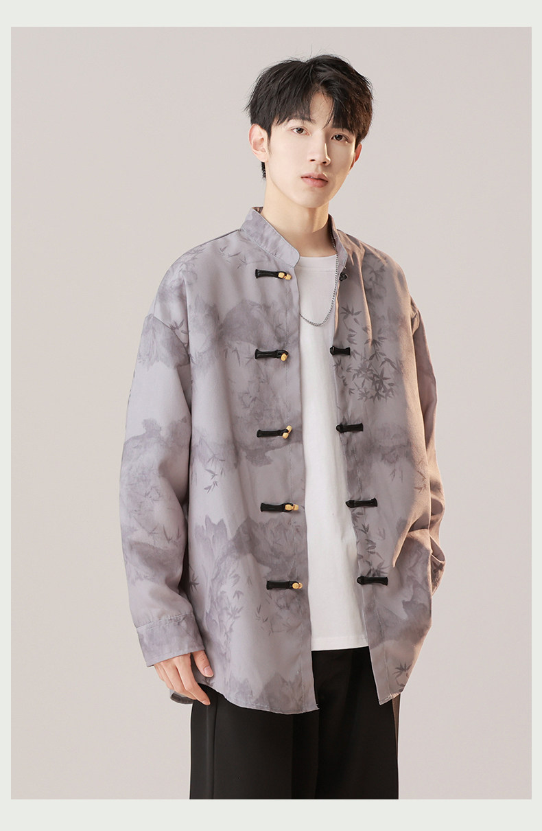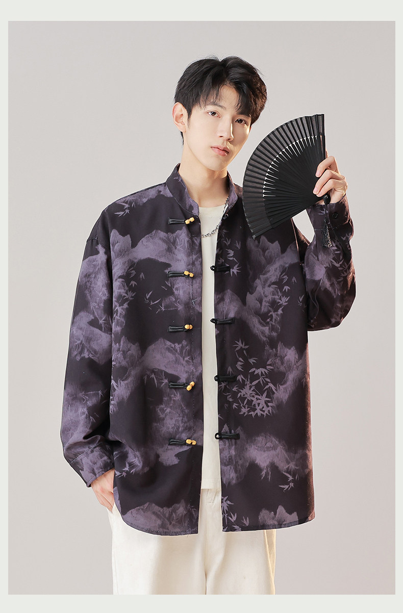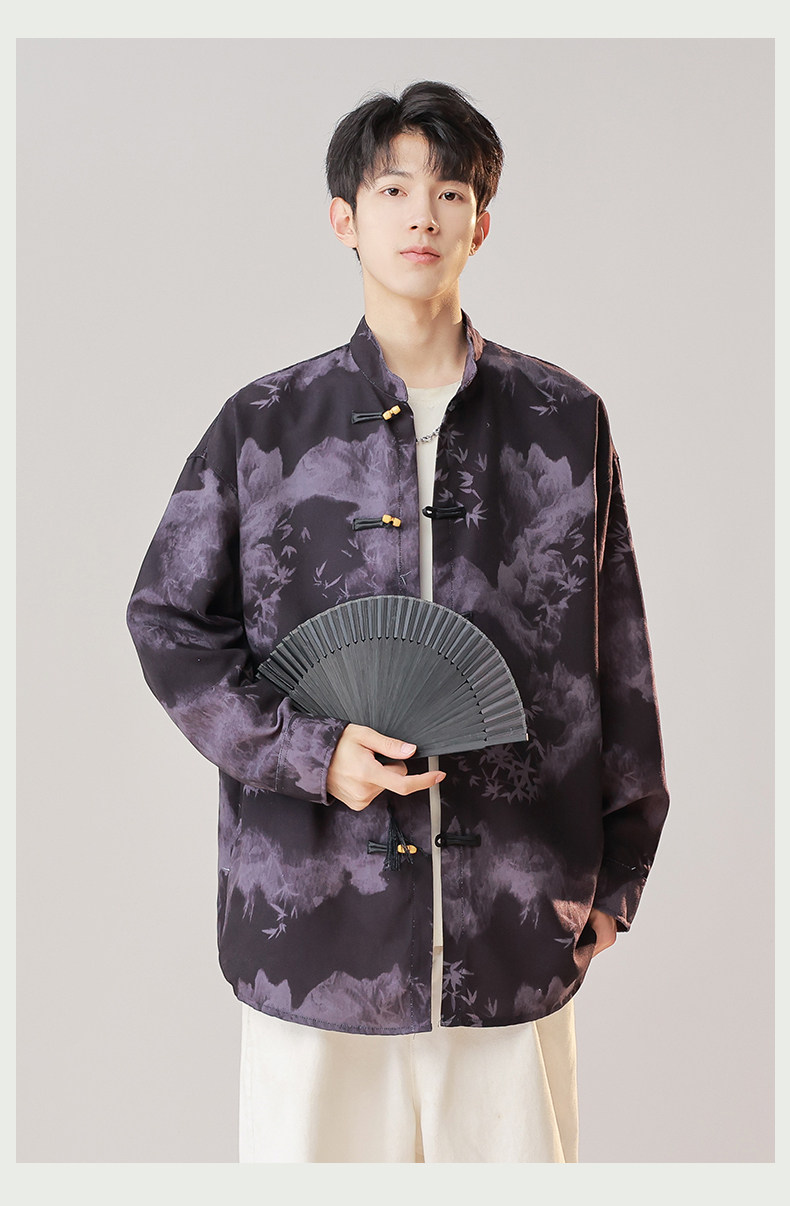 ASAYAHOMME1579 – Ink Mist Mandarin Shirt 🌫️🖤