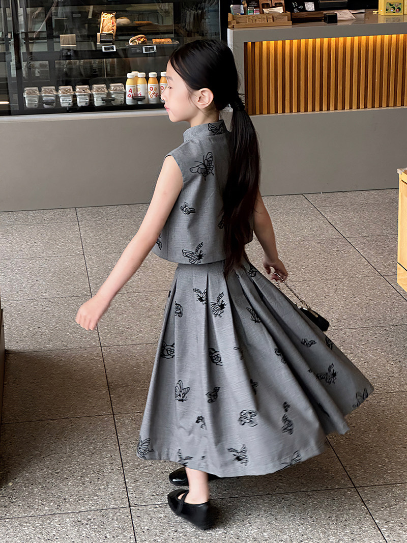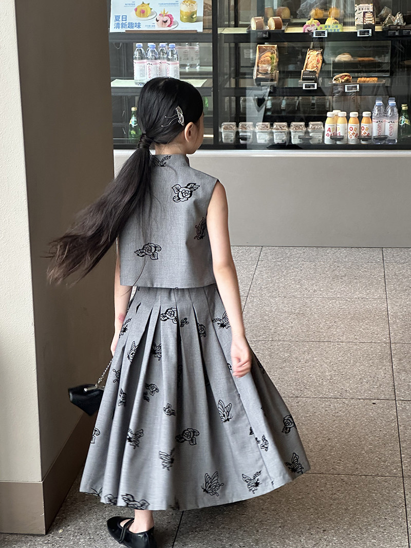 | color classification | Grey vest, grey half skirt |