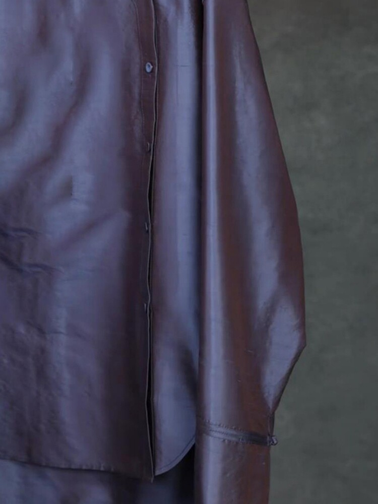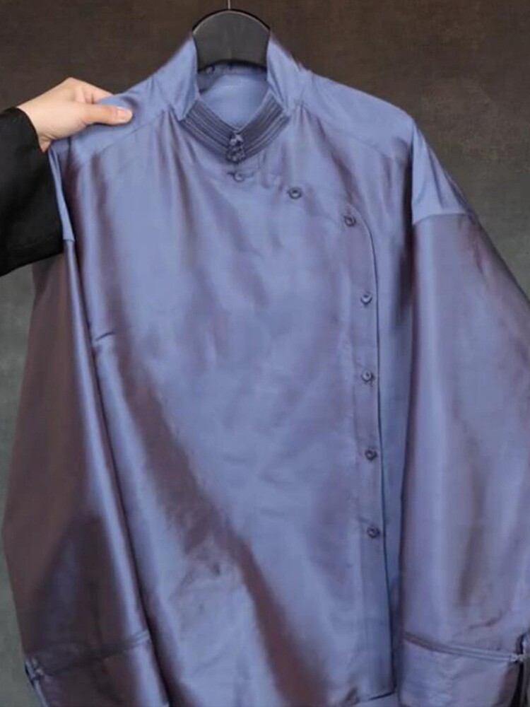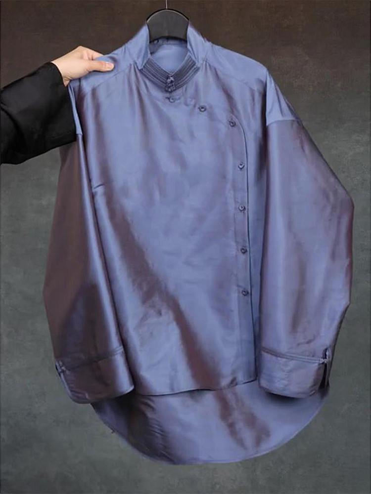 ASAYA5845 – Midnight Silk Mandarin Shirt 🌫️🩵