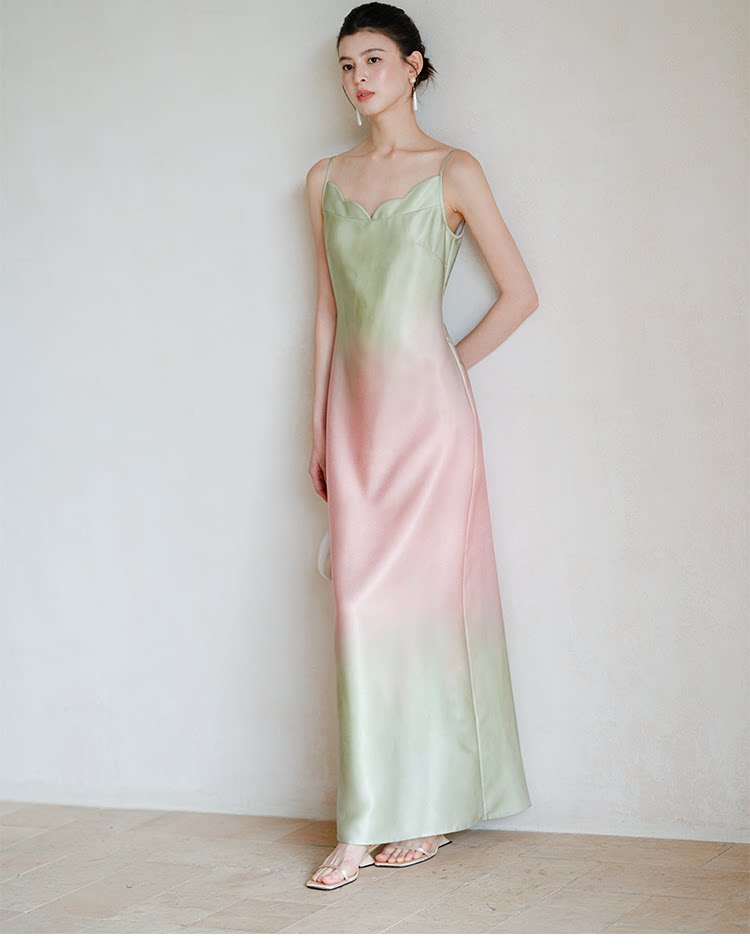 ASAYA6381 – Blossom Gradient Silk Dress 🌸🍃