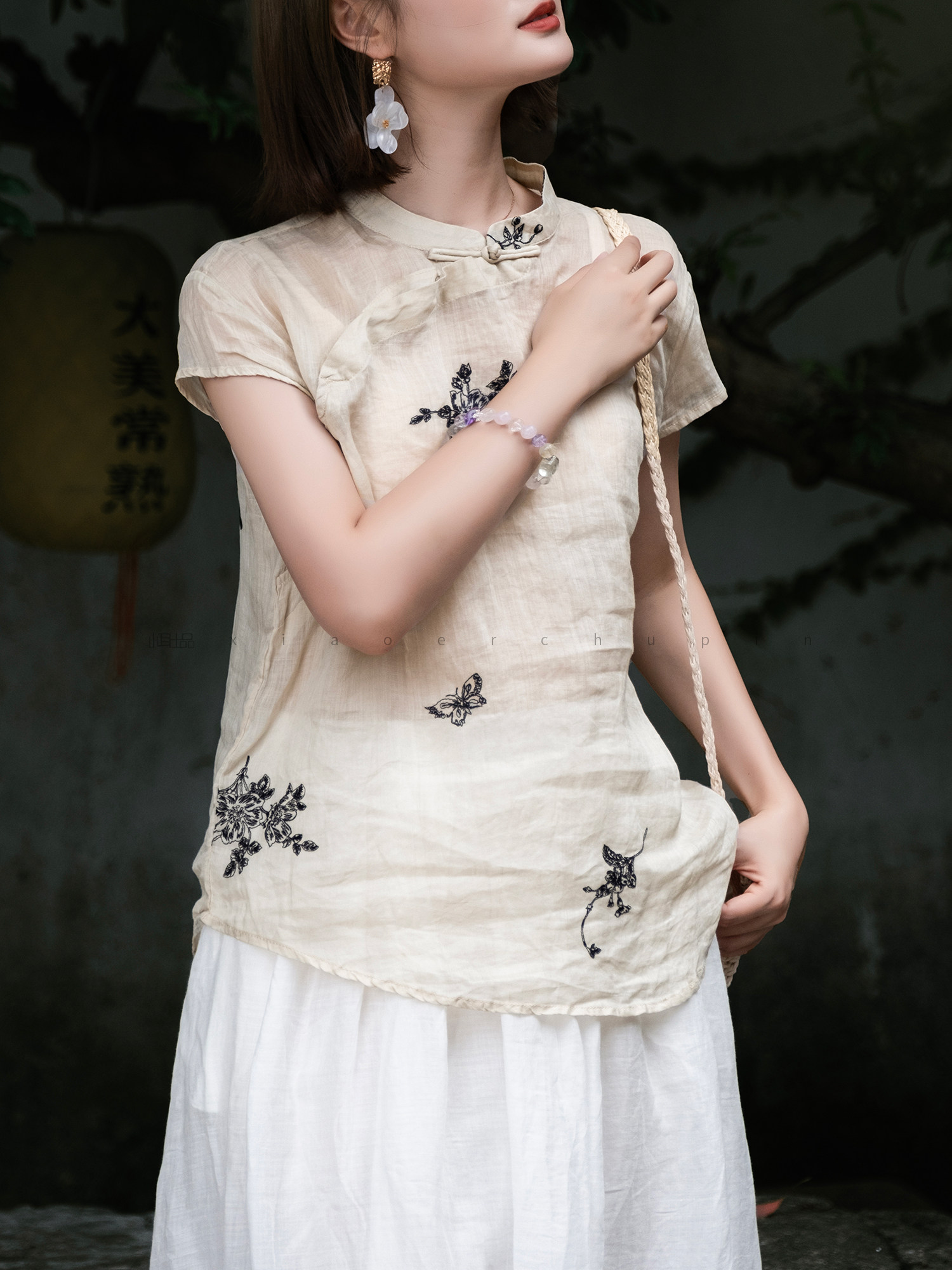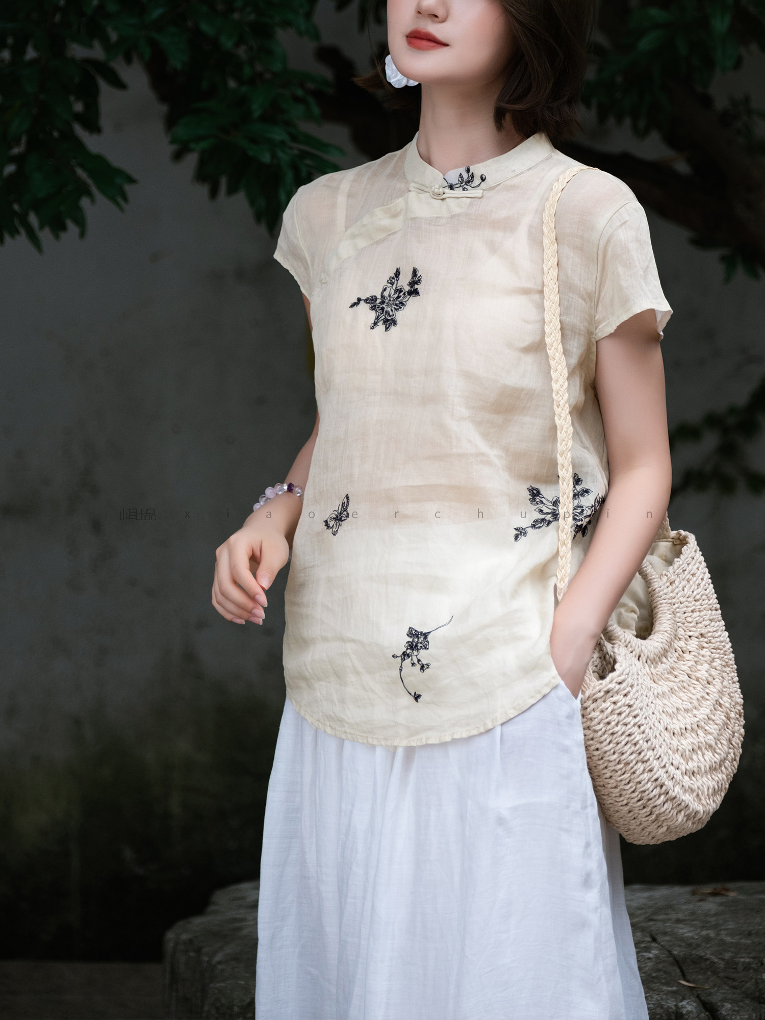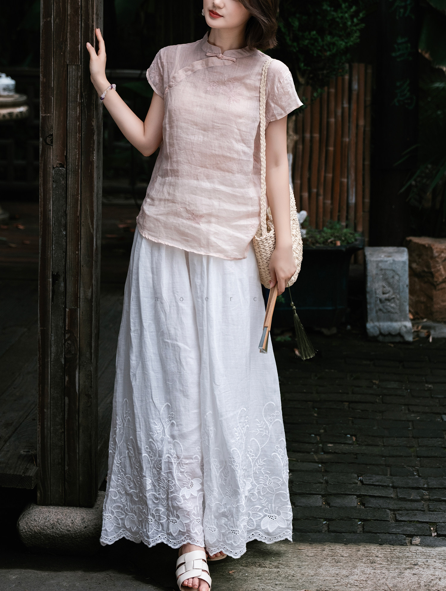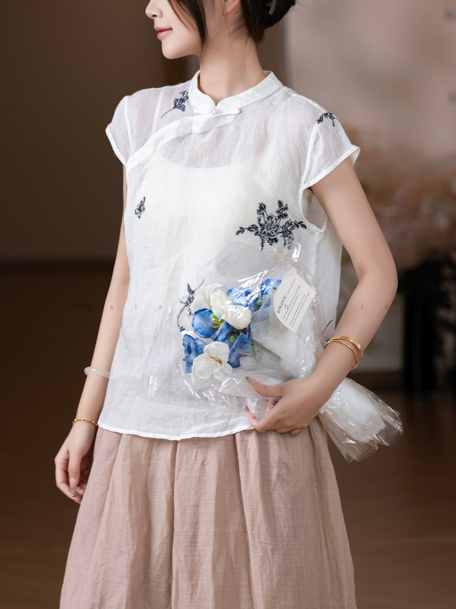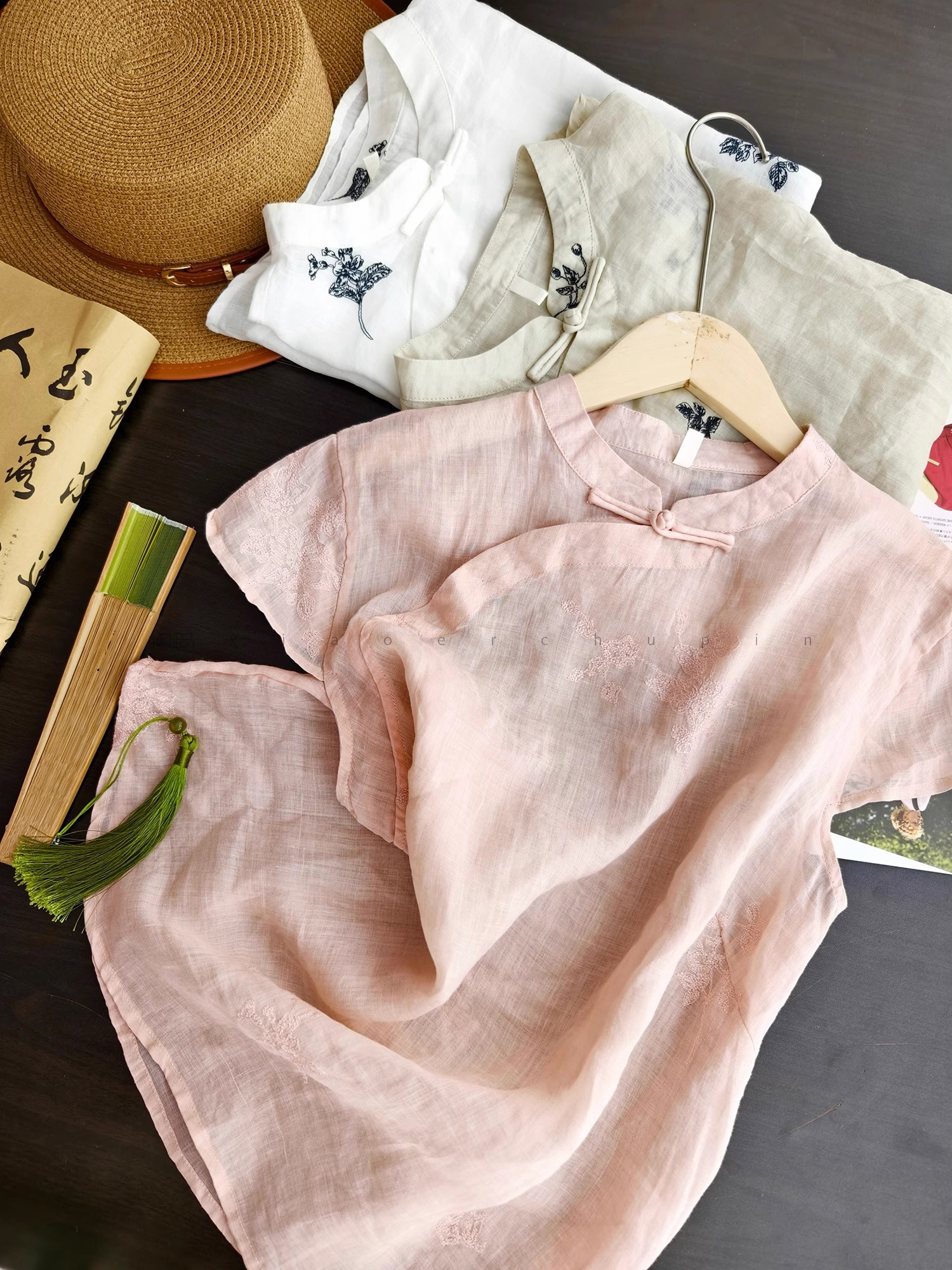 ASAYA5820 – Whisper Linen Oriental Top 🌿🤍