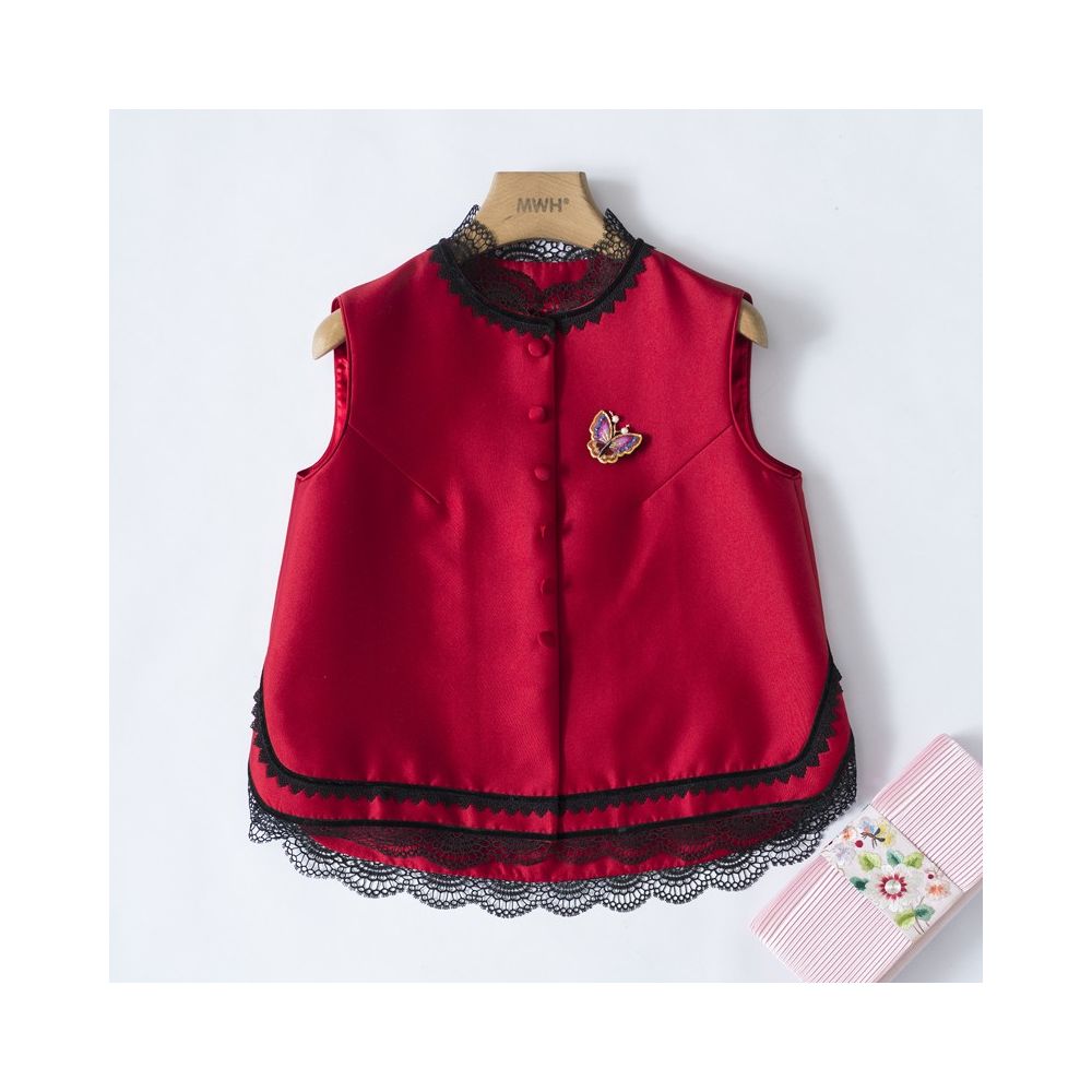 Asaya1580 YXF0087 Xiajia retro lace silk wool vest women s loose short outer wear Tang suit top